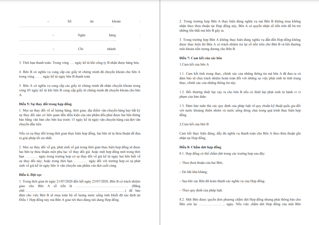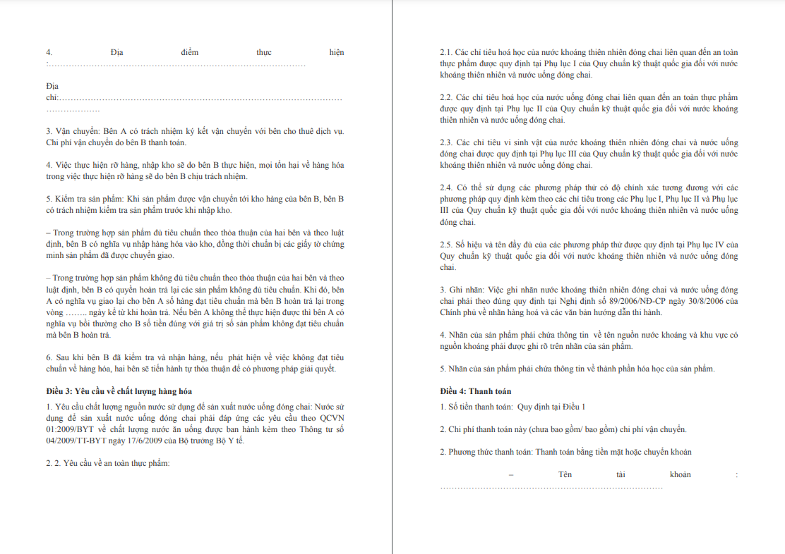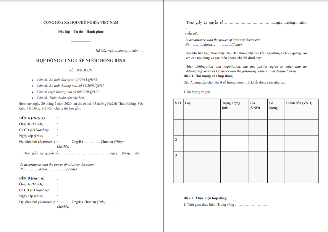 MẪU HỢP ĐỒNG CUNG CẤP NƯỚC UỐNG ĐÓNG BÌNH