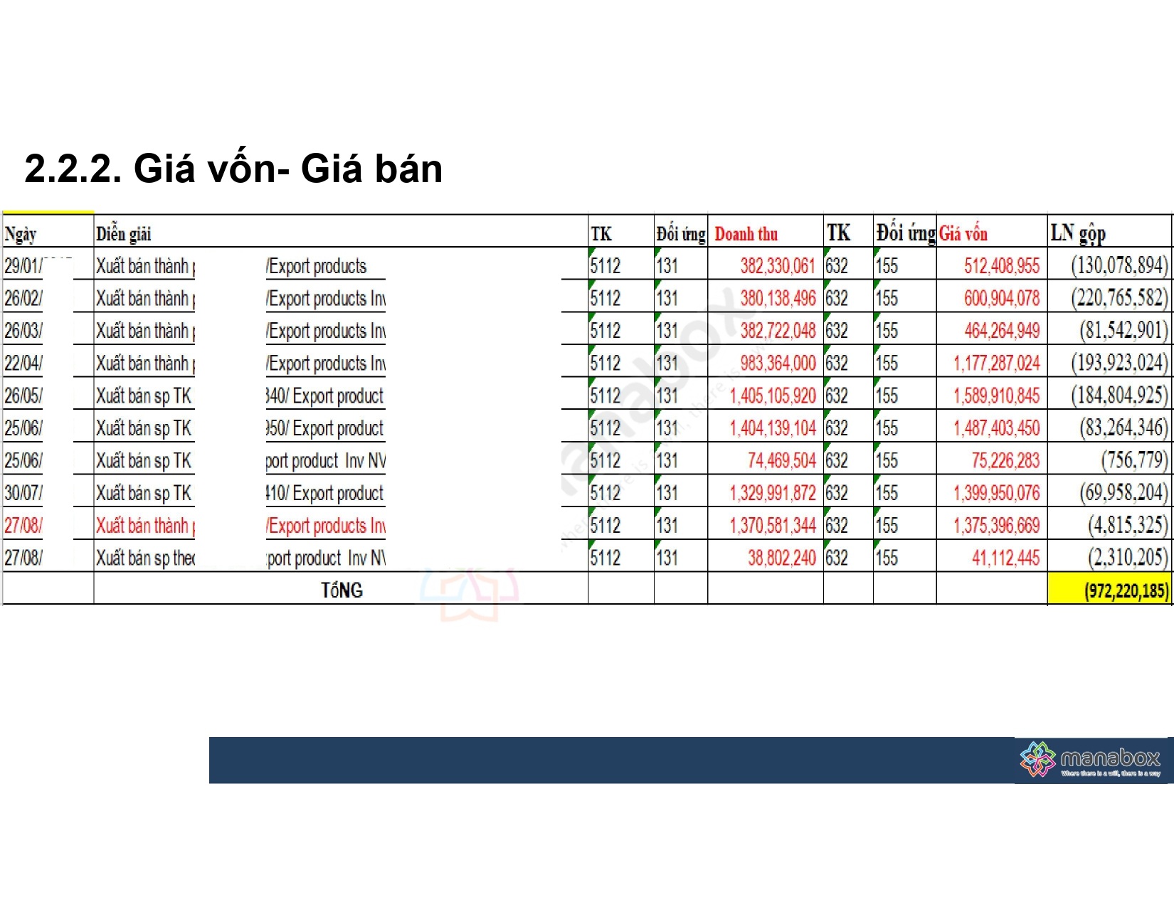 Giải thích nguyên nhân giá bán thấp hơn giá vốn trong một hoặc nhiều kỳ kế toán.