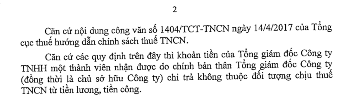 Căn cứ hướng dẫn nêu trên và Giấy chứng nhận đăng ký kinh doanh thì khoản tiền của Giám đốc Công ty TNHH một thành viên (do một cá nhân làm chủ) nhận được không phải là thu nhập từ tiền lương, tiền công và không chịu thuế thu nhập cá nhân.
