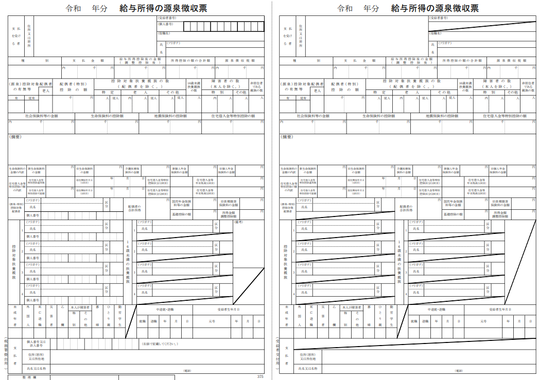Nếu là phiếu khấu trừ liên quan đến thu nhập từ tiền lương, sẽ ghi tổng thu nhập và tổng số thuế đã khấu trừ trong cả năm, và không có điều chỉnh quyết toán cuối năm (các mục về khấu trừ sẽ để trống). Trong trường hợp người nhận là người không cư trú, thuế được khấu trừ theo tỷ lệ cố định 20,42%, và số thuế đó được thể hiện nguyên vẹn trên phiếu.