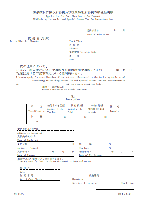 Trang chủ Cục Thuế Nhật Bản – Giấy chứng nhận nộp thuế thu nhập và thuế táithiết: