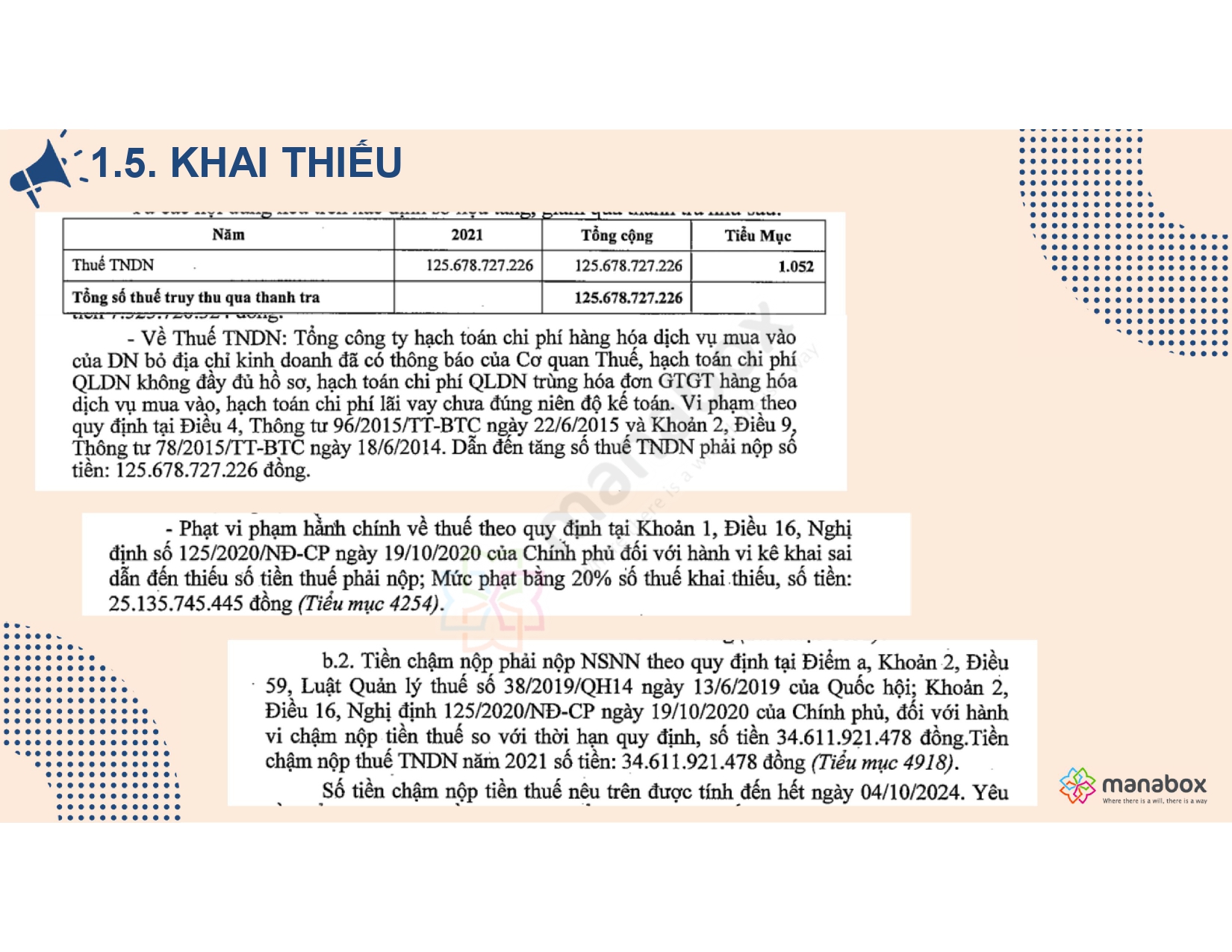 Dưới đây là 5 lưu ý chính và phần tóm tắt nội dung các công văn liên quan đến việc xác định thuế bị truy thu và tính tiền phạt chậm nộp thuế qua thanh tra kiểm tra.