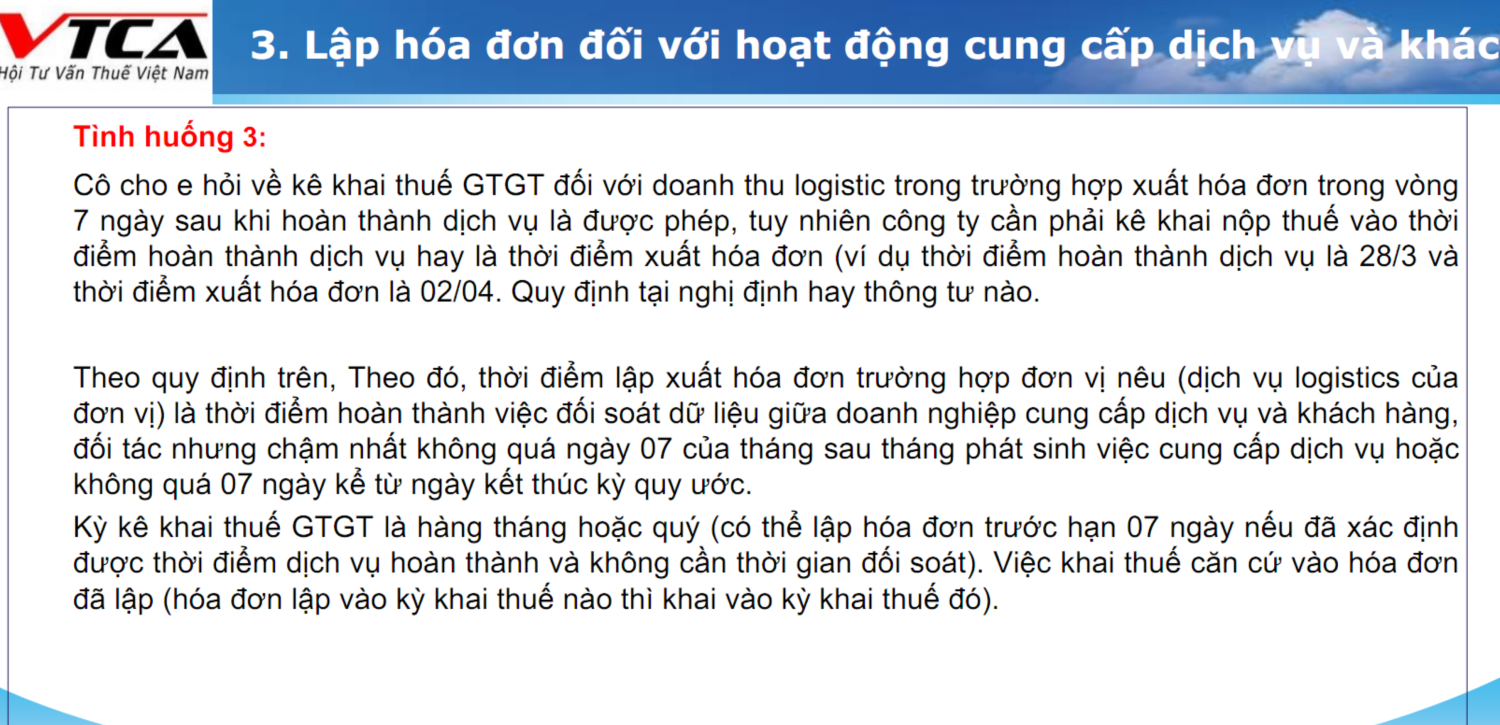 - Vướng mắc: Kê khai GTGT doanh thu logistics khi HĐ xuất trong 7 ngày sau?