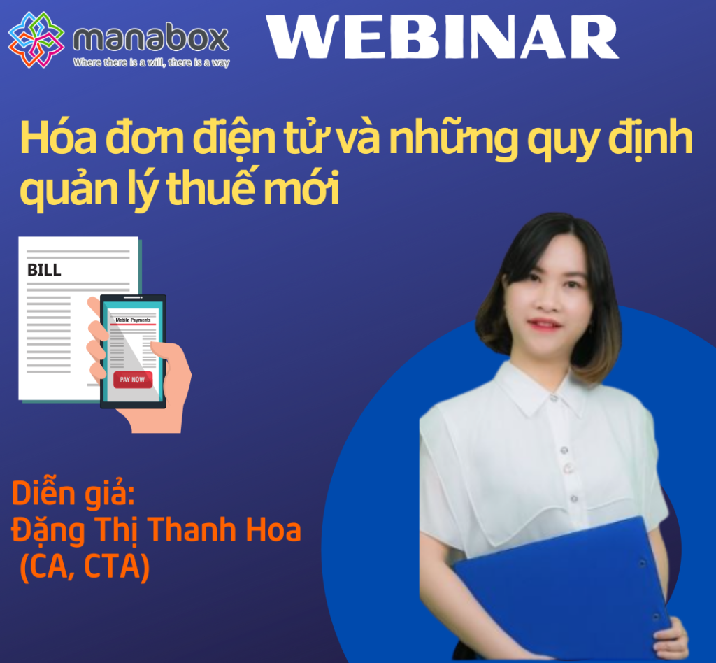 Tiếp theo phần ”Chia sẻ kinh nghiệm về những công việc kế toán cuối kỳ” Manabox Việt Nam xin phép gửi đến quý khách hàng tài liệu và video ghi hình của phần Các thay đổi trong chính sách liên quan đến hóa đơn điện tử và Điểm mới về hóa đơn điện tử Slide …