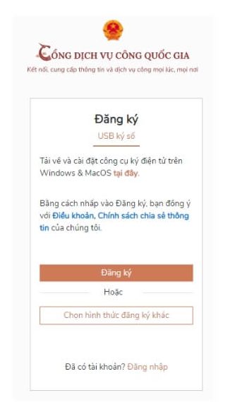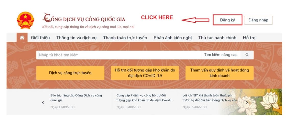 - Visit the page: https://dichvucong.gov.vn/p/home/dvc-trang-chu.html and tick Register