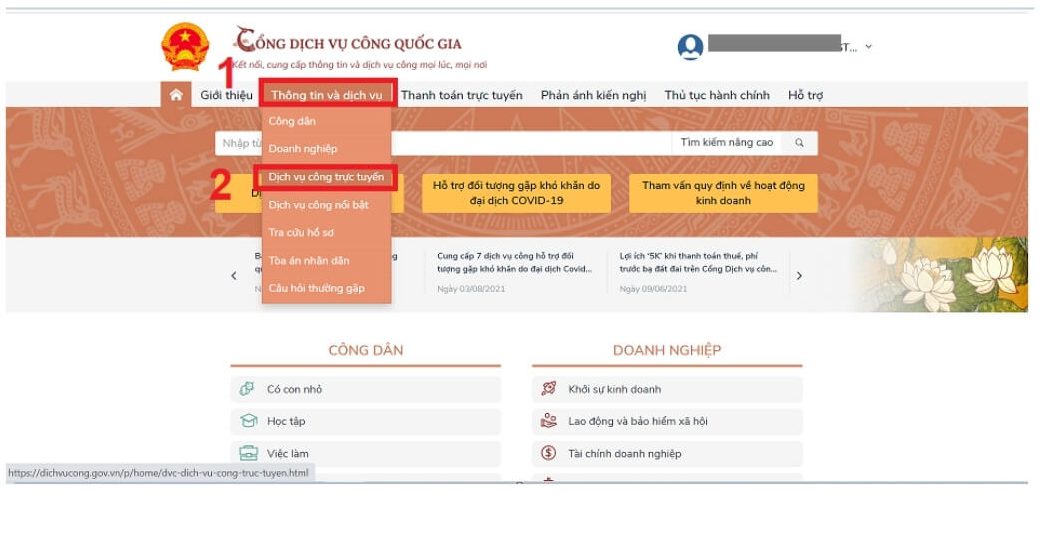 - 5.1 Step 1: Chọn Dịch vụ Công _Choose Online public services