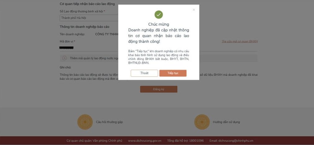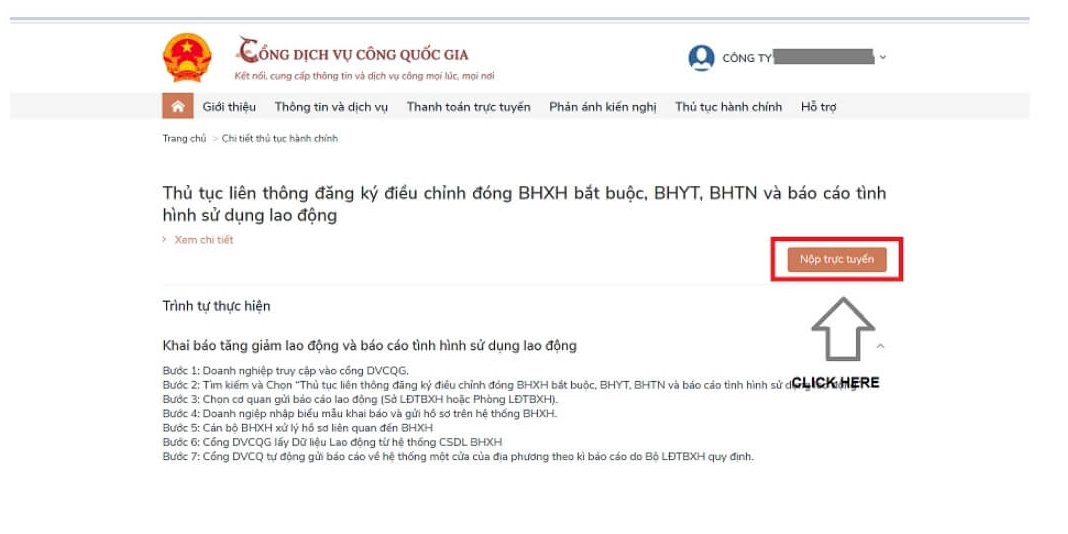 Step 4: Company enter the declaration form and submit the dossier on the social insurance system.