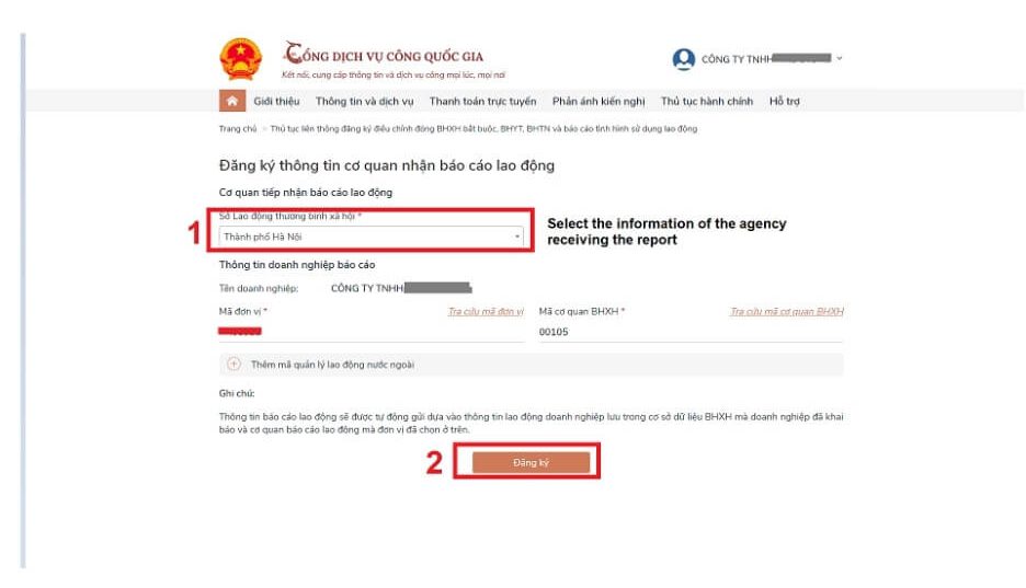 Bước 3: Chọn cơ quan gửi báo cáo lao động (Sở LĐTBXH hoặc Phòng LĐTBXH).