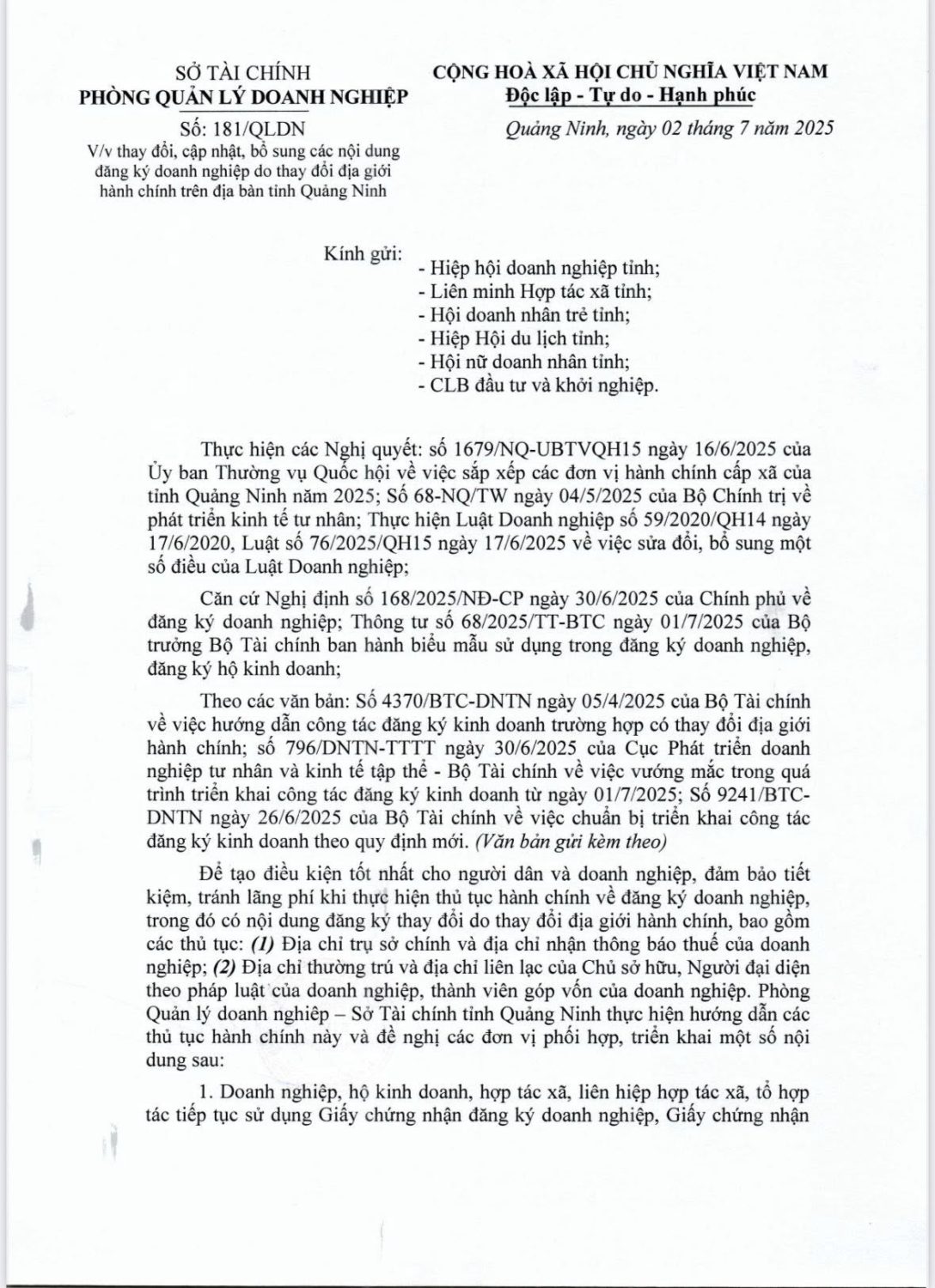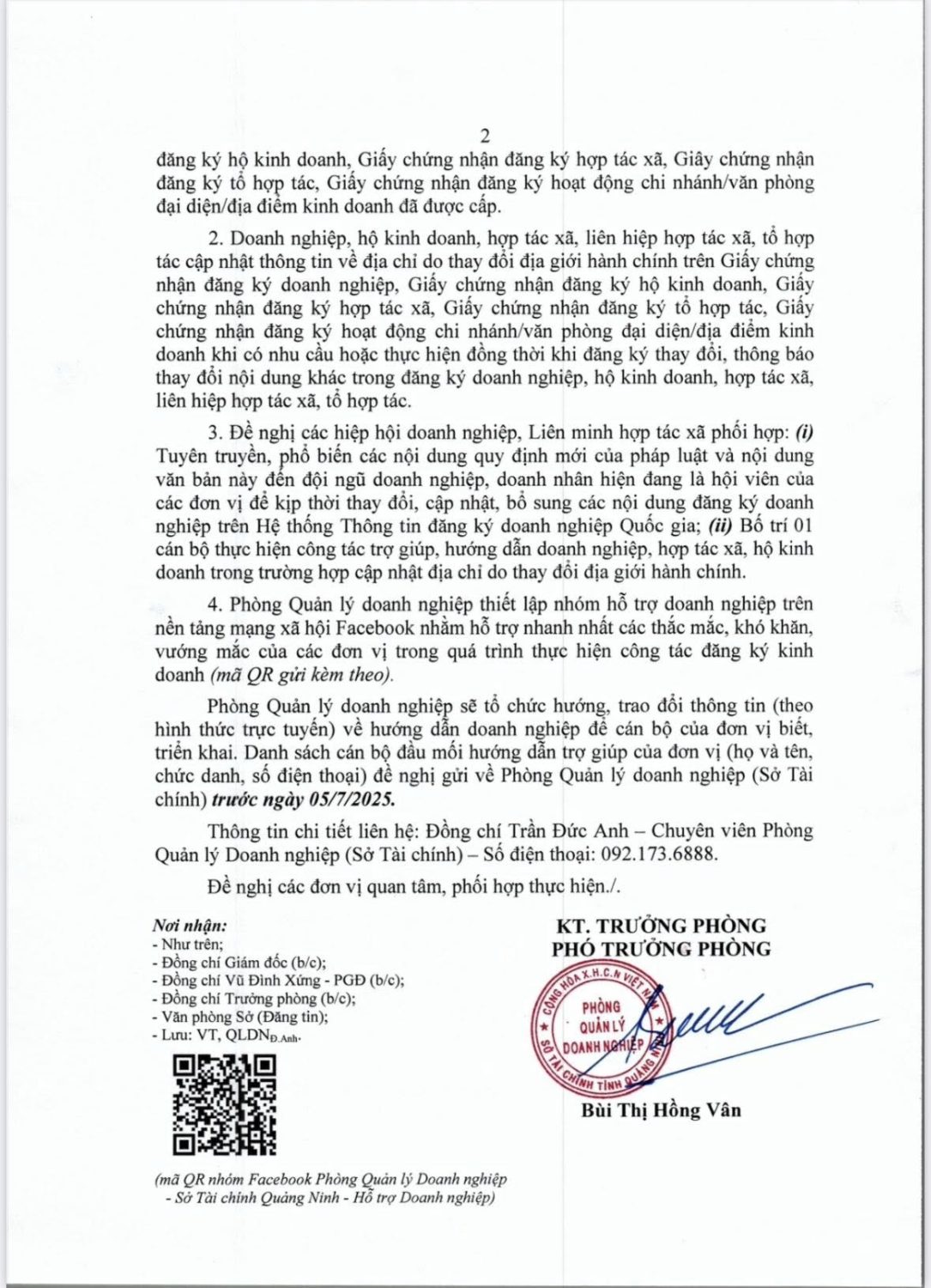 1. Các nội dung cần cập nhật trong đăng ký doanh nghiệp: Các đơn vị cần xác định có nội dung đăng ký bị ảnh hưởng bởi thay đổi địa giới, gồm: