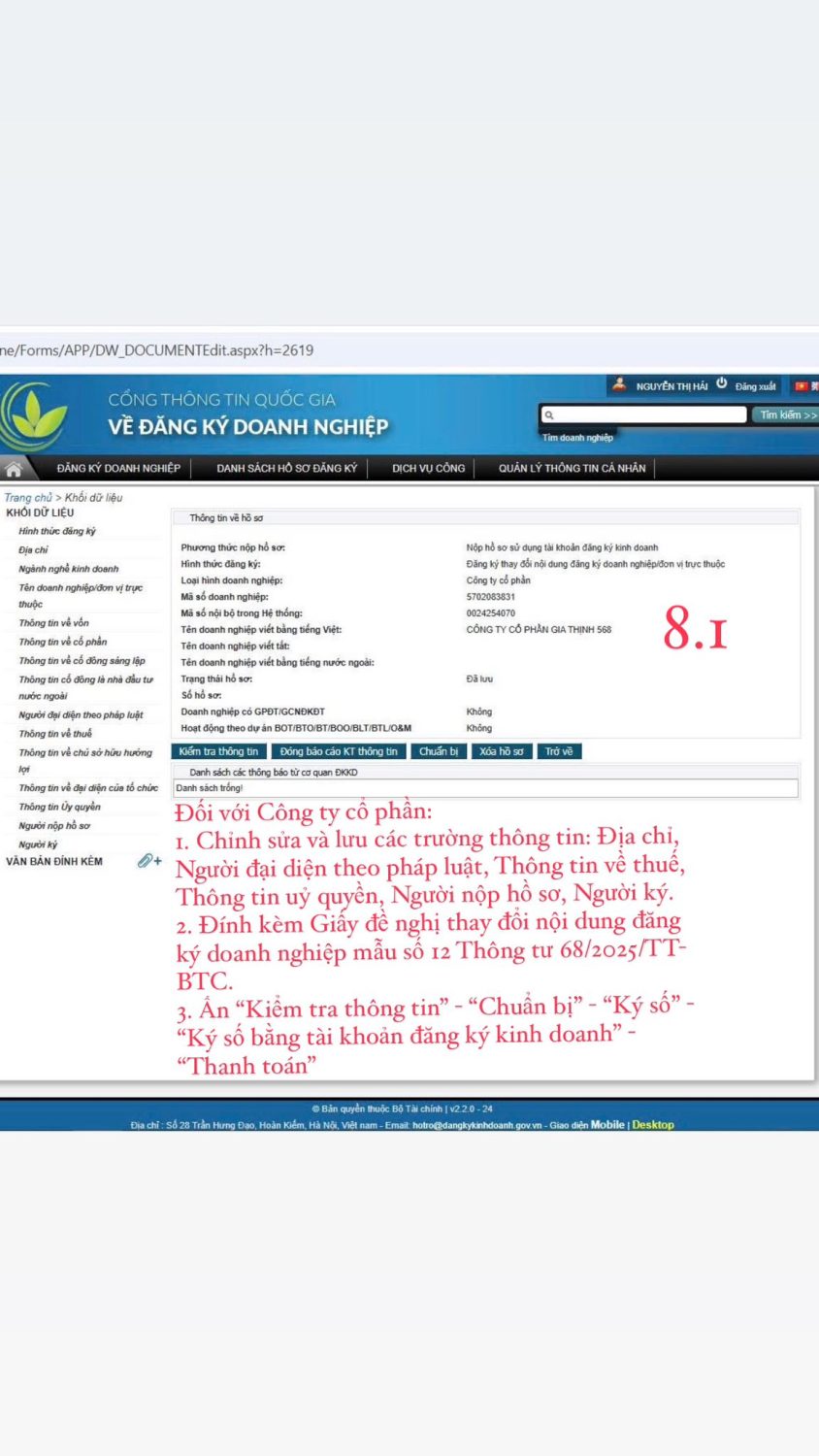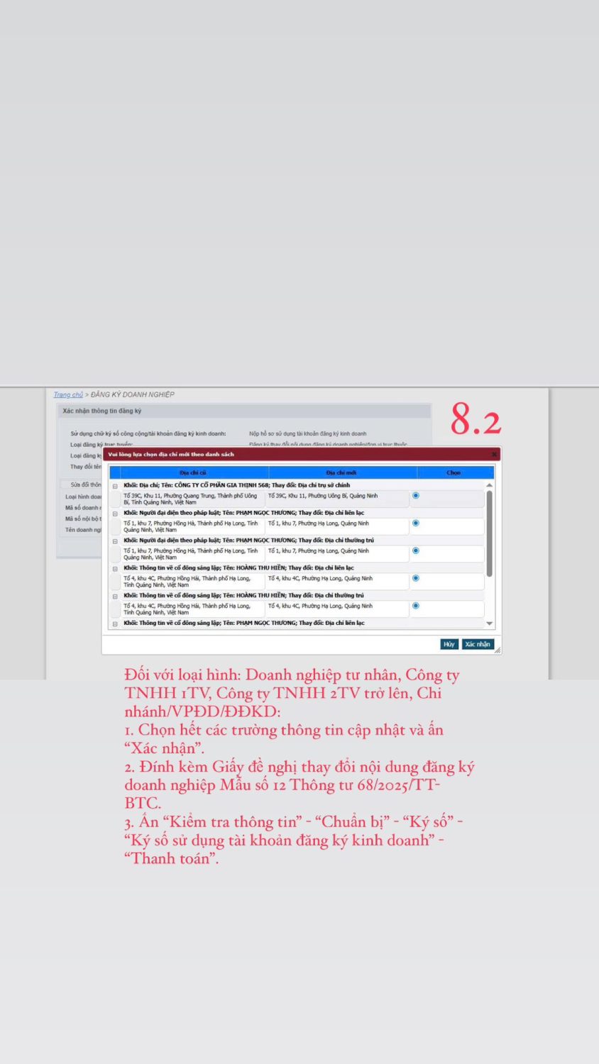 Dưới đây là bản hướng dẫn các doanh nghiệp, hợp tác xã, hộ kinh doanh, hiệp hội… thực hiện Các bước cập nhật địa chỉ kinh doanh theo địa giới mới (Có hình ảnh minh họa)