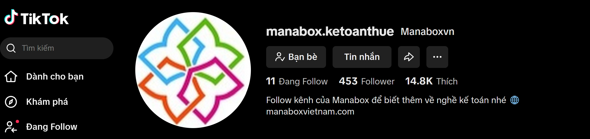 Kênh https://www.tiktok.com/@manabox.ketoanthue