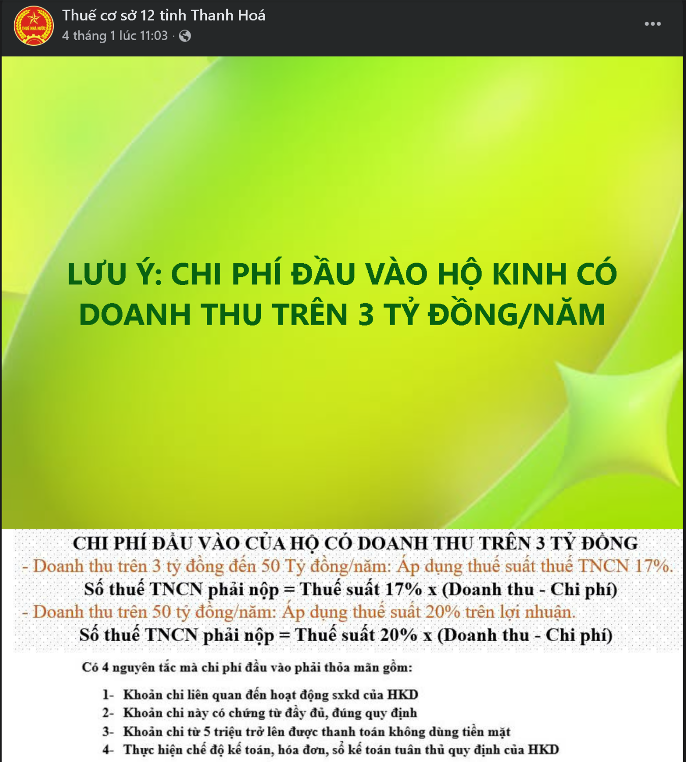 Ngoài ra, với các hộ kinh doanh có chi phí đầu vào cần tính trừ thì lưu ý điều kiện