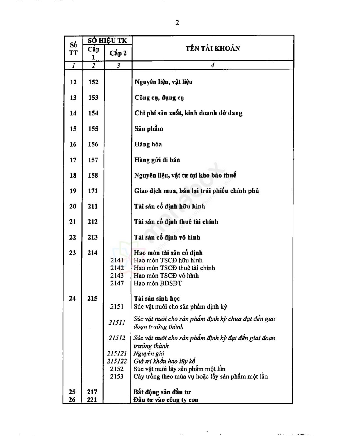 | 2 | 211, 212, 213, 214, 217, 221, 222, 228, 229, 241, 242, 243, 244 | Tài sản dài hạn |