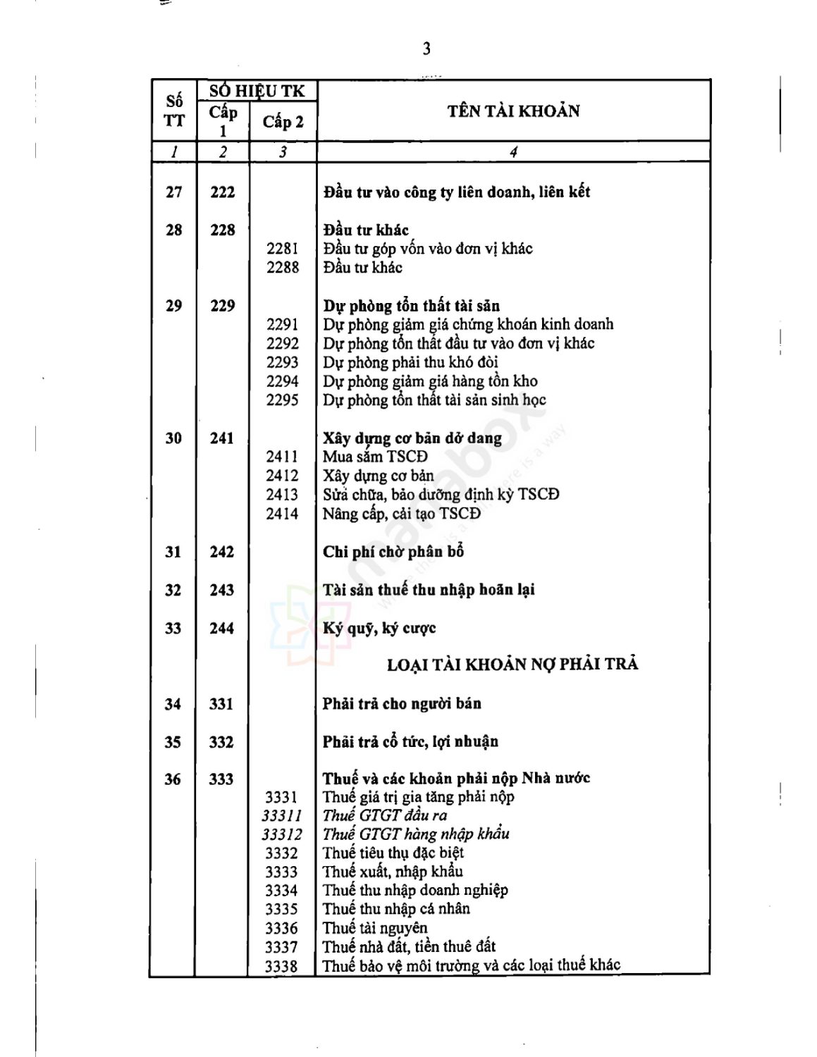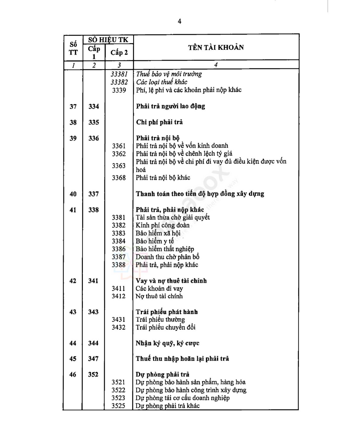 | 3 | 331, 333, 334, 335, 336, 337, 338, 341, 343, 344, 347, 352, 353, 356, 357 | Nợ phải trả |