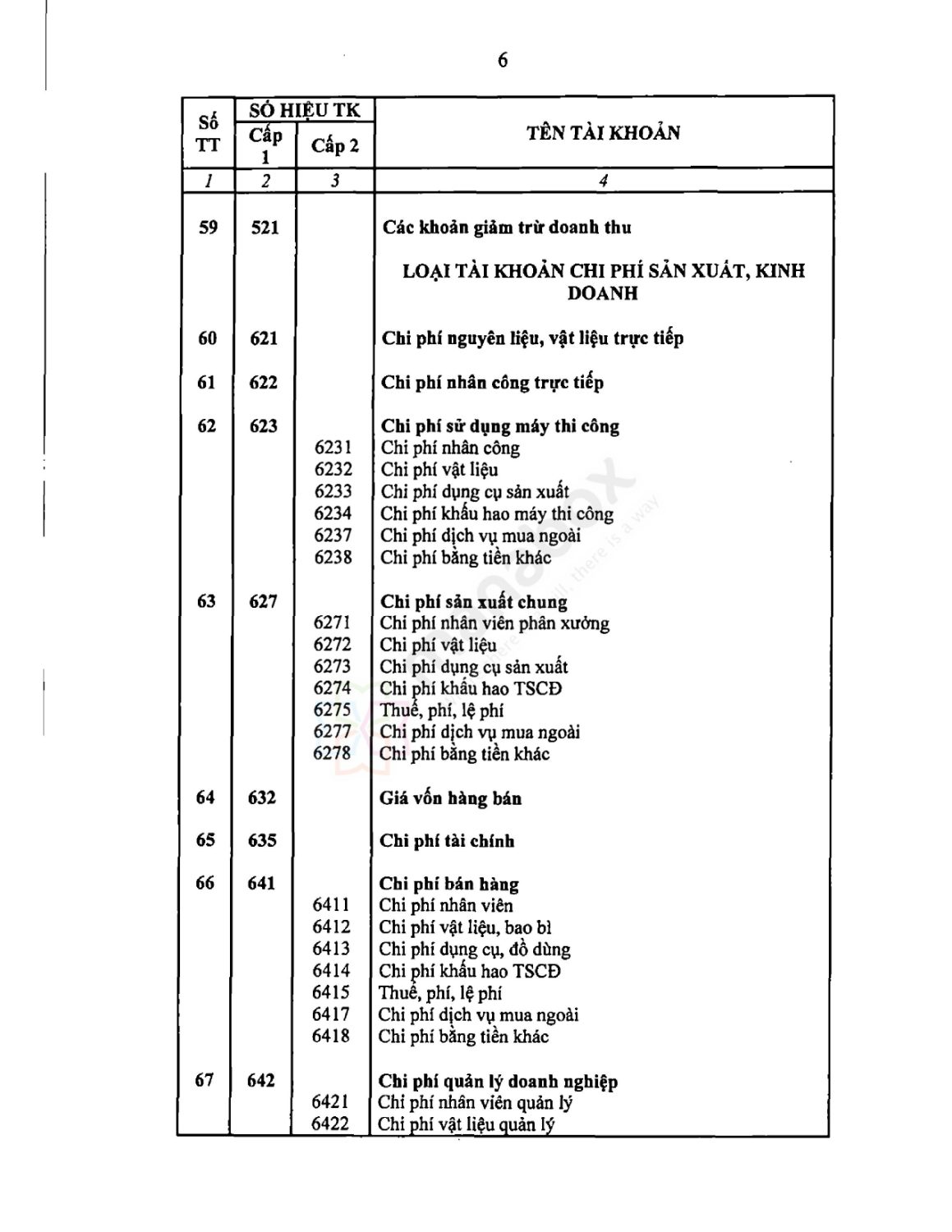 | 6 | 621, 622, 623, 627, 632, 635, 641, 642 | Chi phí SXKD |