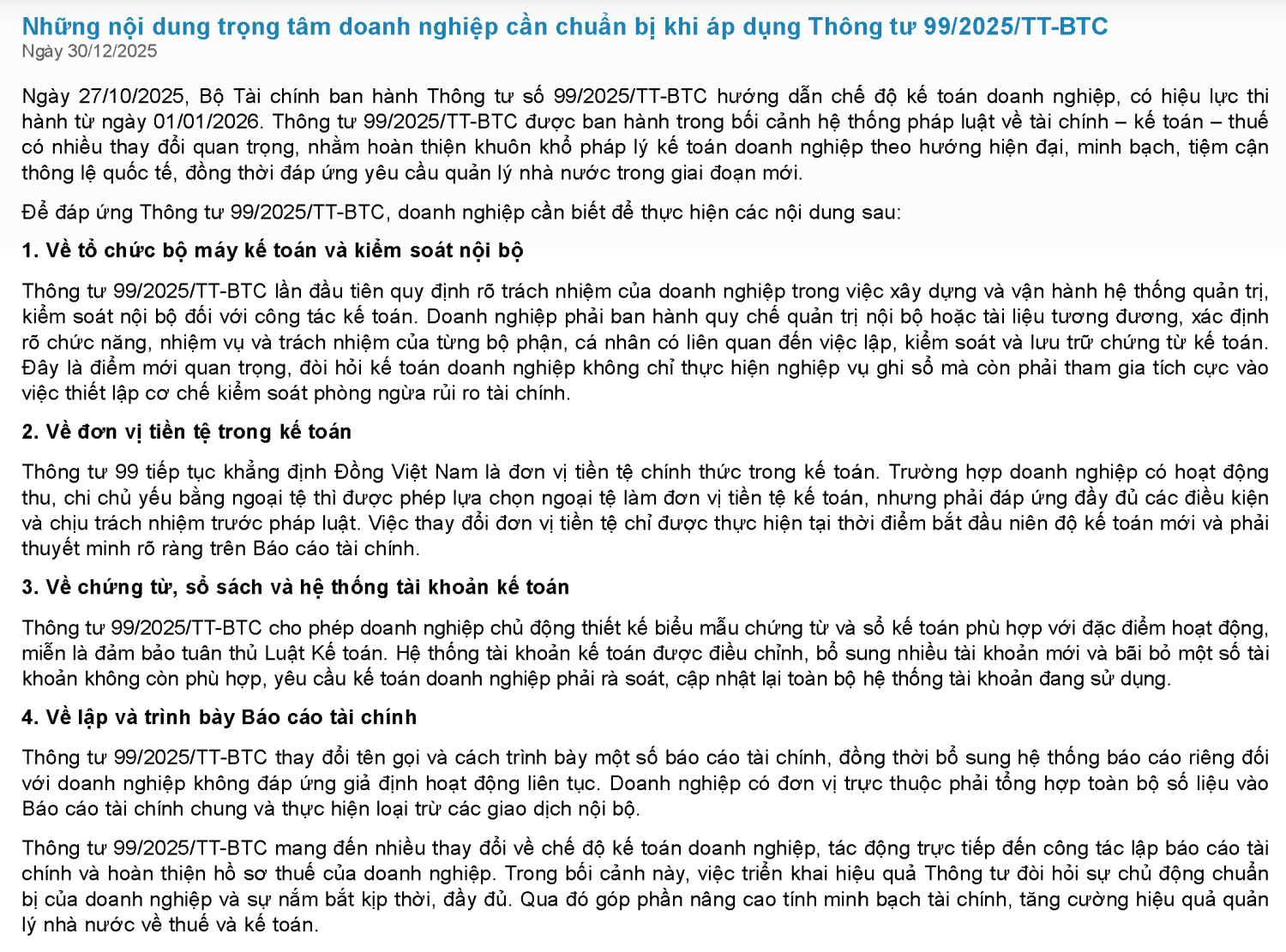 Chế độ kế toán mới: Thông tư 99 thay thế thông tư 200 được áp dụng từ năm 2026 với nhiều điểm mới cần cập nhật. Một số điểm quan trọng về hiệu lực chuyển tiếp như sau
