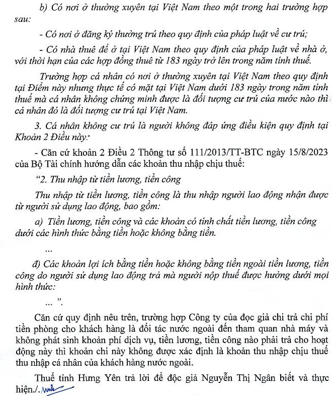 Trích dẫn tại Công văn của Thuế Tỉnh Hưng Yên: