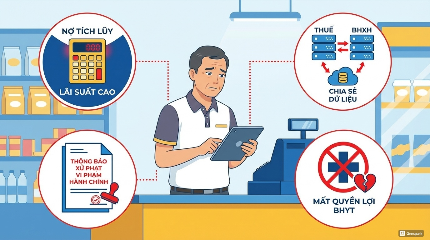 Vấn đề đáng quan tâm nhất không nằm ở con số phải đóng, mà ở rủi ro pháp lý nếu chủ hộ kinh doanh bỏ qua nghĩa vụ này.
