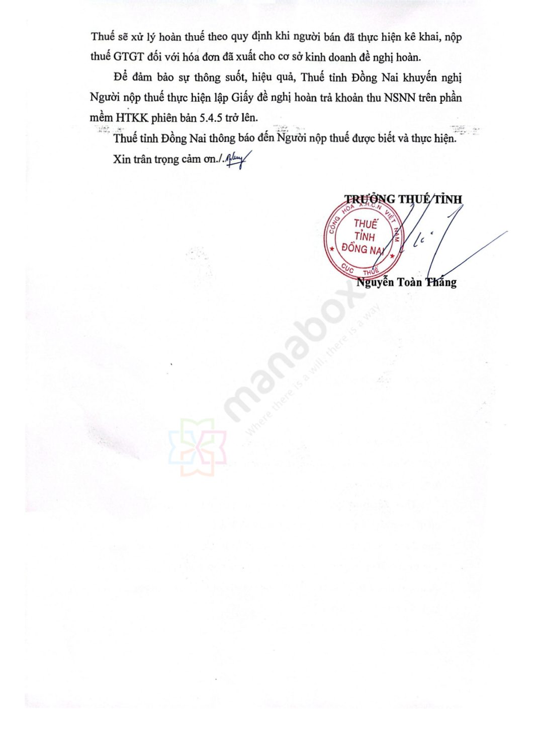 Yêu cầu kỹ thuật/hồ sơ: cần dùng HTKK phù hợp để lập Giấy đề nghị hoàn trả khoản thu NSNN