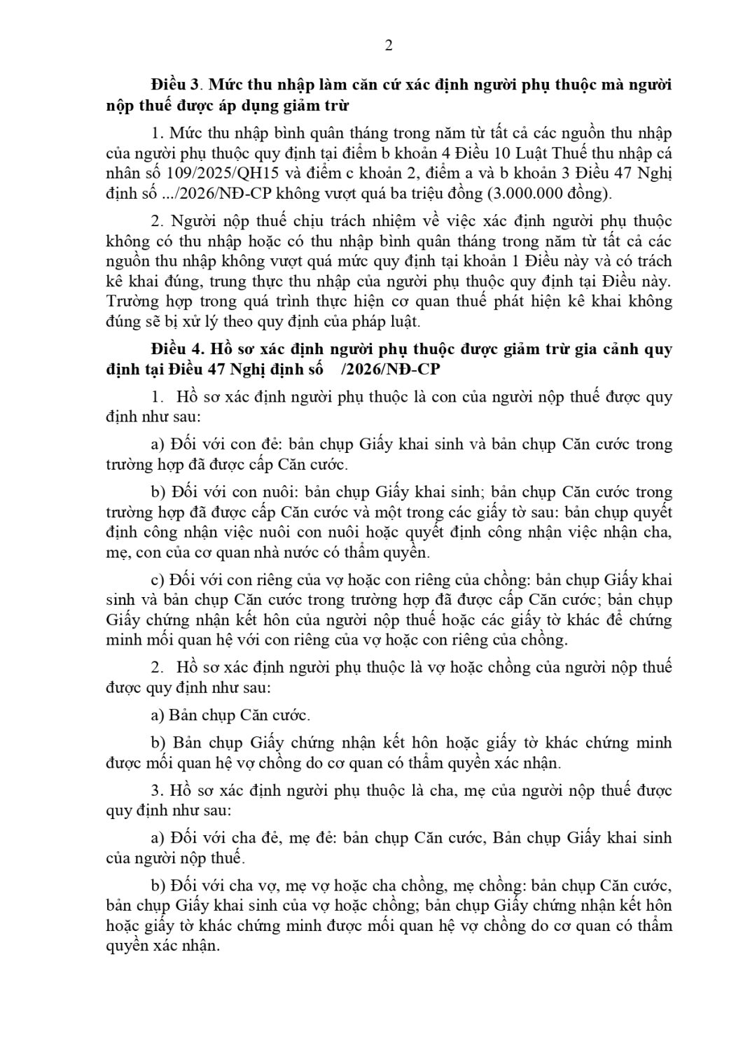 • Áp dụng: Cho kỳ tính thuế năm 2026 đối với thu nhập từ kinh doanh, tiền lương và tiền công của cá nhân cư trú