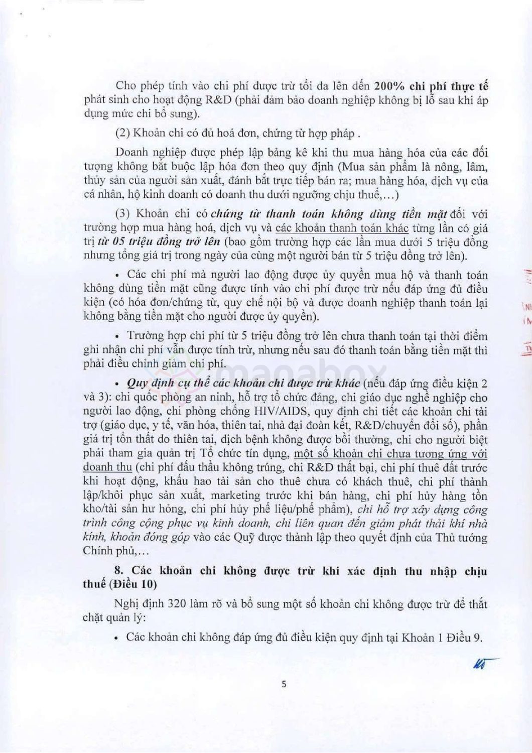 Về các khoản chi phí được trừ (Điều 9):