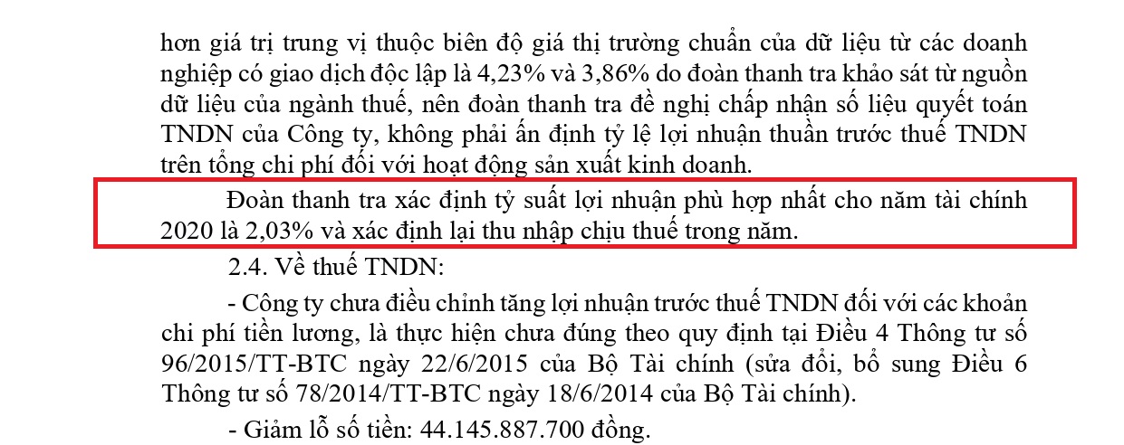 Cơ quan thuế cho rằng việc kê khai lỗ là không hợp lý do không cung cấp đủ bằng chứng để loại trừ các khác biệt trọng yếu (địa lý, thị trường, đặc thù ngành,…) khi so sánh giá thị trường.
