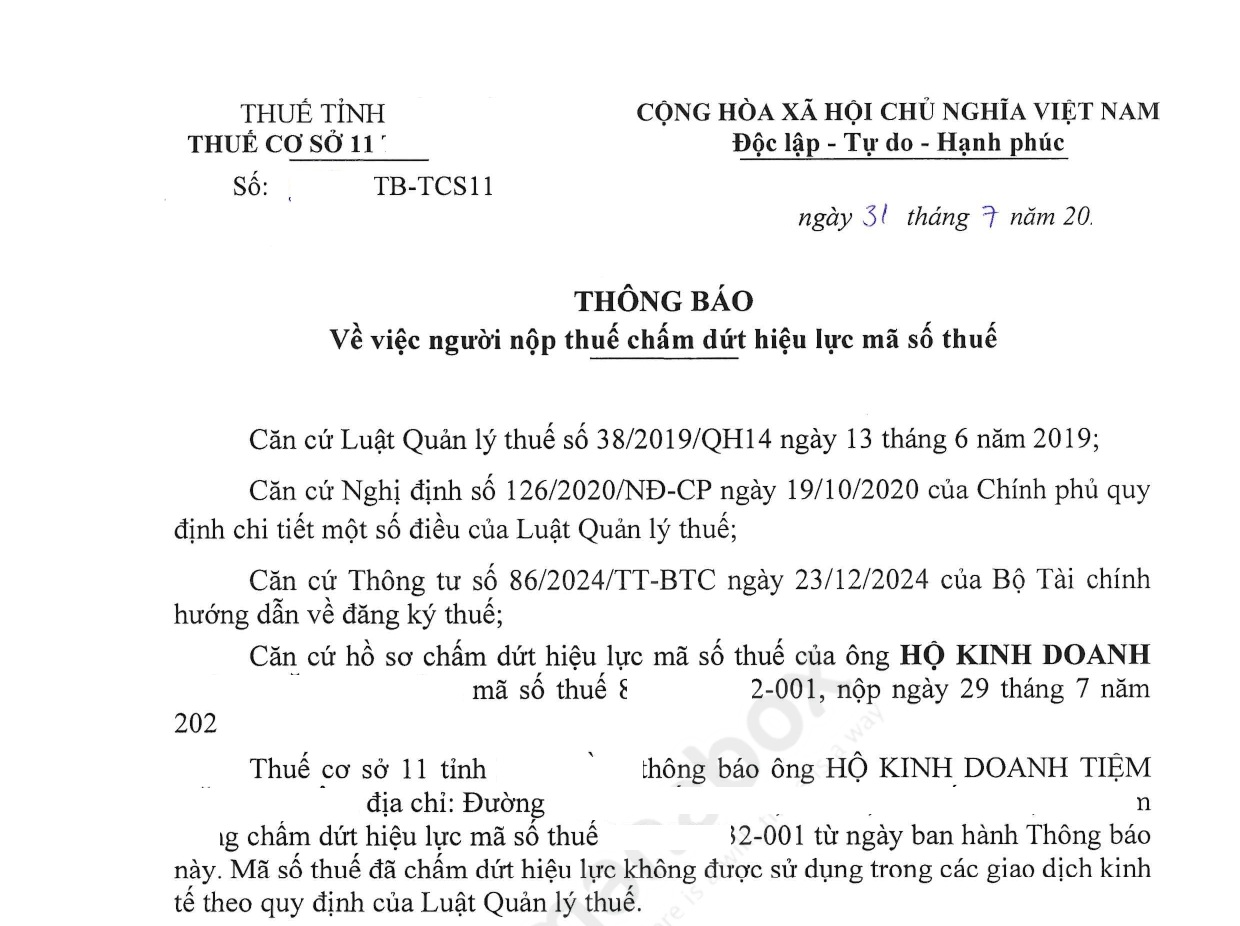 Hoàn tất: Cơ quan thuế sẽ ra thông báo chính thức xác nhận việc đóng cửa mã số hộ kinh doanh cũ.