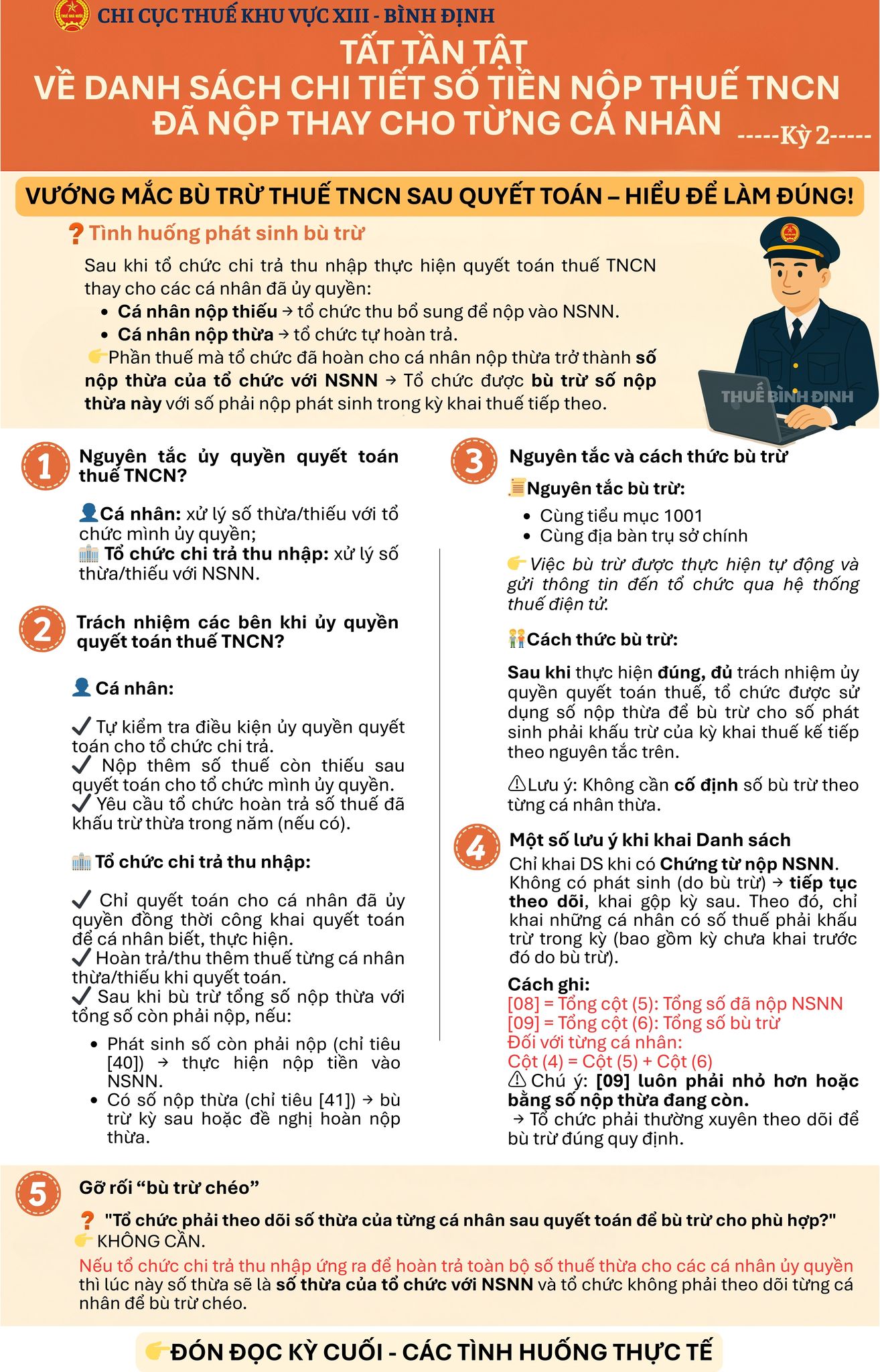 🔶 Lưu ý: Trường hợp Công ty có cá nhân làm việc tại tỉnh khác (Phụ lục 05-1/PBT-KK-TNCN), thì số thuế nộp thừa (sau quyết toán) bản thân công ty sẽ không được bù trừ cho số phát sinh năm 2025 của các cá nhân khác (đảm bảo nguyên tắc cùng Tiểu mục và địa bàn) trên danh sách chi tiết thuế TNCN nộp thay