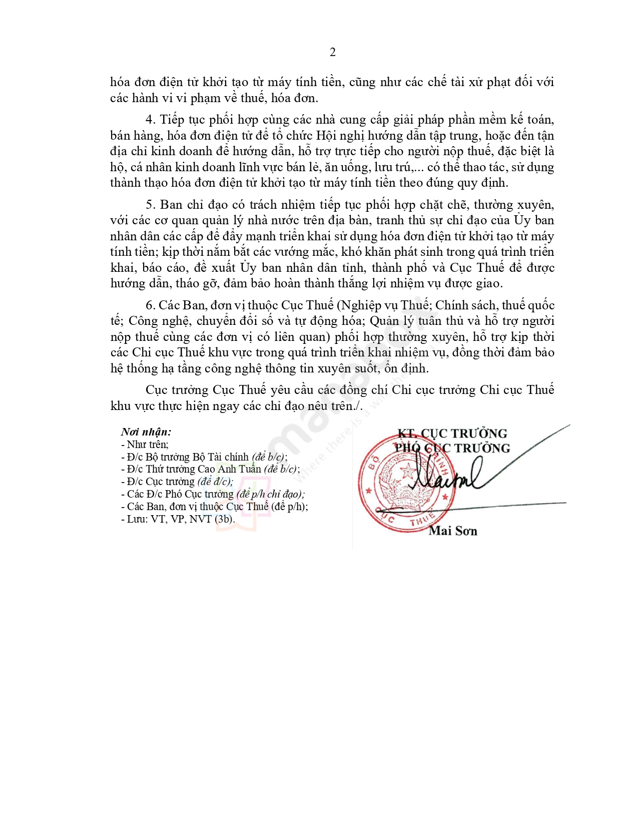 “2a. Trường hợp tổ chức, hộ kinh doanh, cá nhân kinh doanh thuộc diện áp dụng hóa đơn điện tử khởi tạo từ máy tính tiền theo quy định tại Nghị định này nhưng chưa có máy tính tiền do chưa đáp ứng điều kiện về hạ tầng công nghệ thông tin, giải pháp xuất hóa đơn điện tử từ máy tính tiền thì cơ quan thuế có kế hoạch, giải pháp hỗ trợ và thông báo đến người nộp thuế về việc chuyển đổi áp dụng hóa đơn điện tử khởi tạo từ máy tính tiền. Trường hợp người nộp thuế đã được cơ quan thuế hỗ trợ và thông báo về việc chuyển đổi áp dụng hóa đơn điện tử khởi tạo từ máy tính tiền nhưng không chuyển đổi thì được xác định là hành vi vi phạm quy định về sử dụng hóa đơn, cơ quan thuế phối hợp với cơ quan có thẩm quyền để xử lý vi phạm theo quy định của pháp luật.