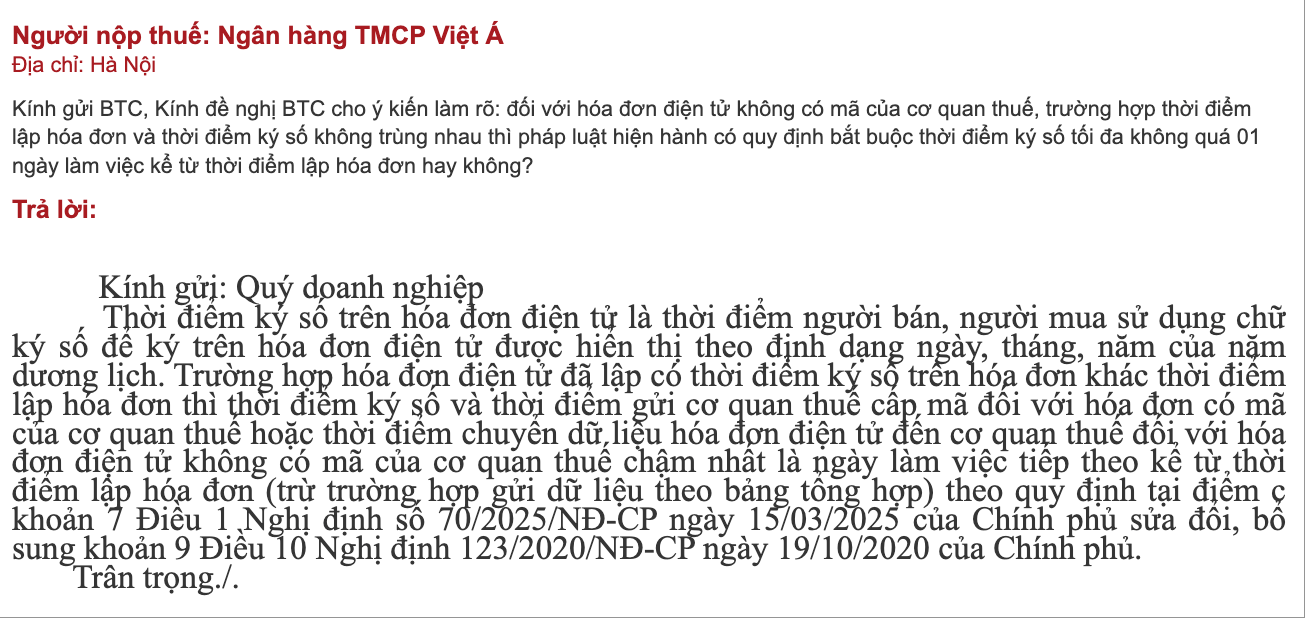 Trong thực tế giao dịch, không phải lúc nào người bán cũng có thể ký số ngay tại thời điểm lập hóa đơn. Vậy pháp luật cho phép độ trễ này là bao lâu? Căn cứ vào trả lời của cơ quan Thuế dựa trên Nghị định 70/2025/NĐ-CP, doanh nghiệp cần lưu ý “mốc thời gian vàng” sau đây.