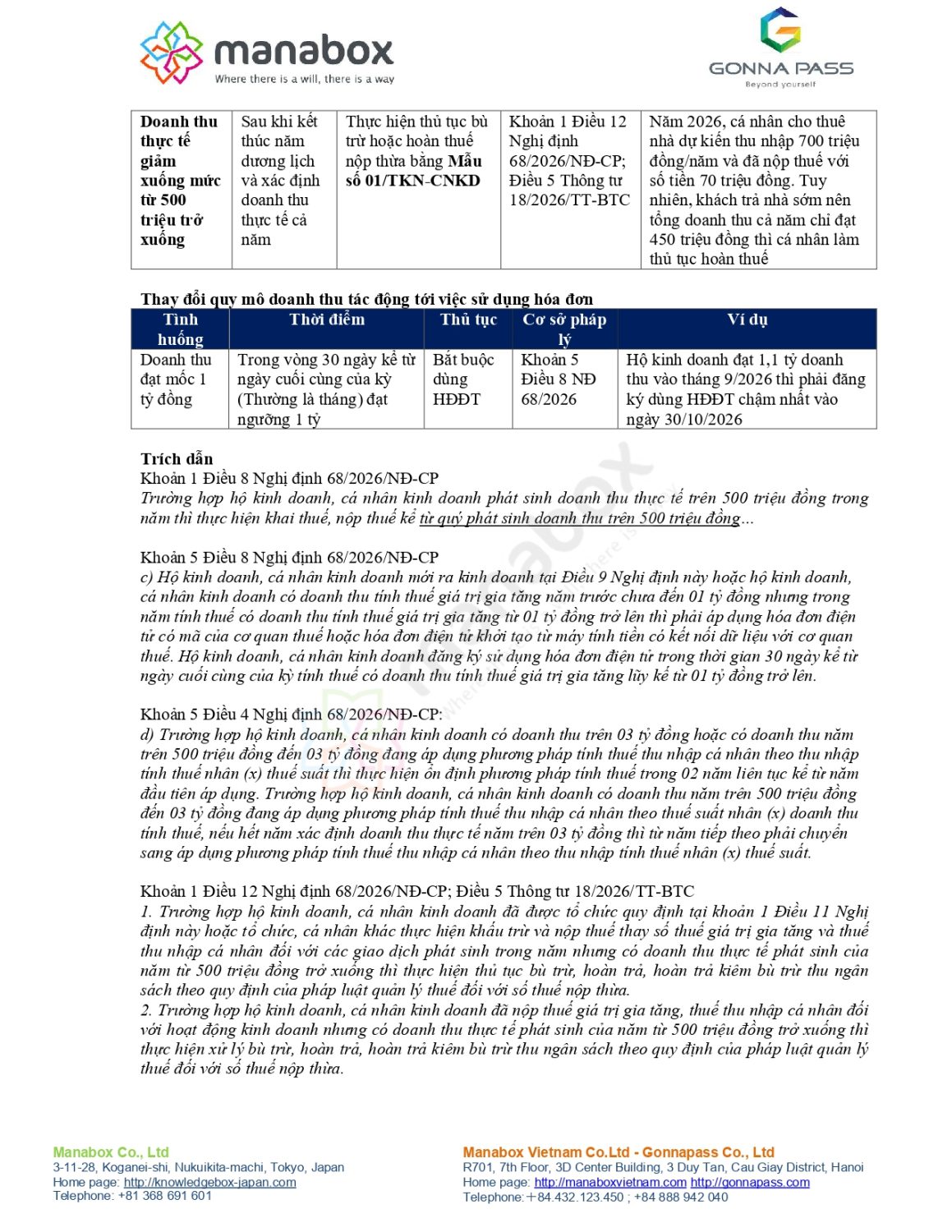 • Nghĩa vụ thuế: Số thuế GTGT và TNCN phải nộp được xác định theo phương pháp trực tiếp trên doanh thu hoặc phương pháp hỗn hợp tùy theo lựa chọn và quy mô thực tế
