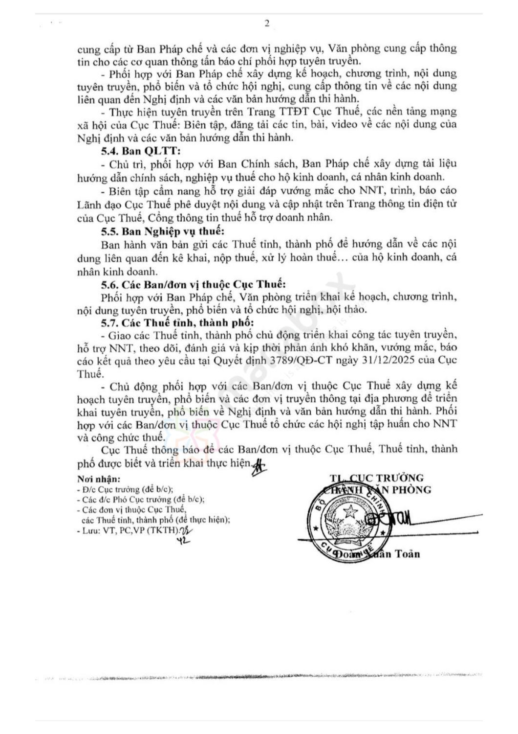 Chỉ đạo việc xây dựng, cập nhật, chia sẻ cơ sở dữ liệu hộ kinh doanh, cá nhân kinh doanh giữa các cơ quan quản lý và cơ quan thuế, bảo đảm dữ liệu đồng bộ, chính xác.