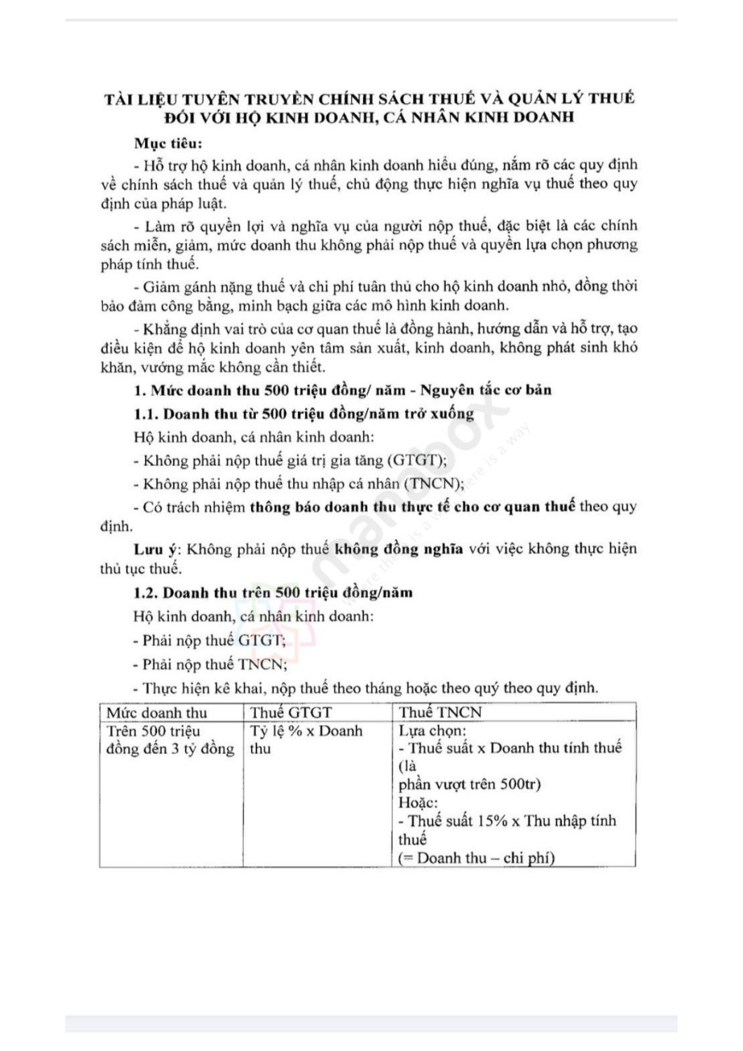 1. Mức doanh thu 500 triệu đồng/năm – Nguyên tắc cơ bản
