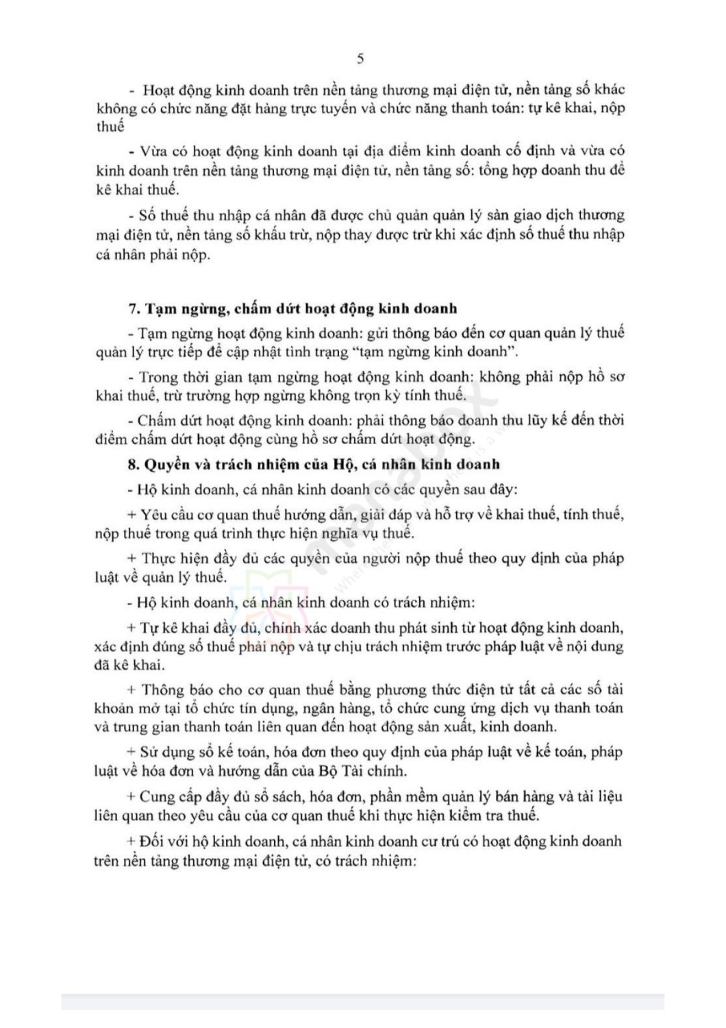 8. Quyền và trách nhiệm của Hộ, cá nhân kinh doanh