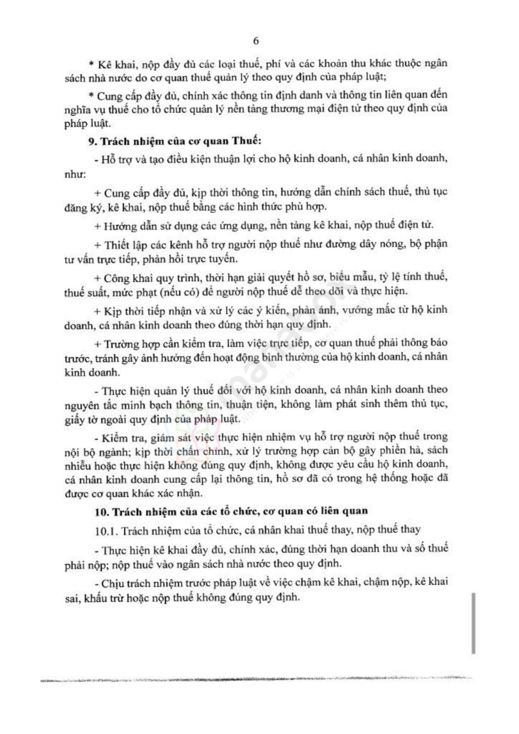 9. Trách nhiệm của cơ quan Thuế: