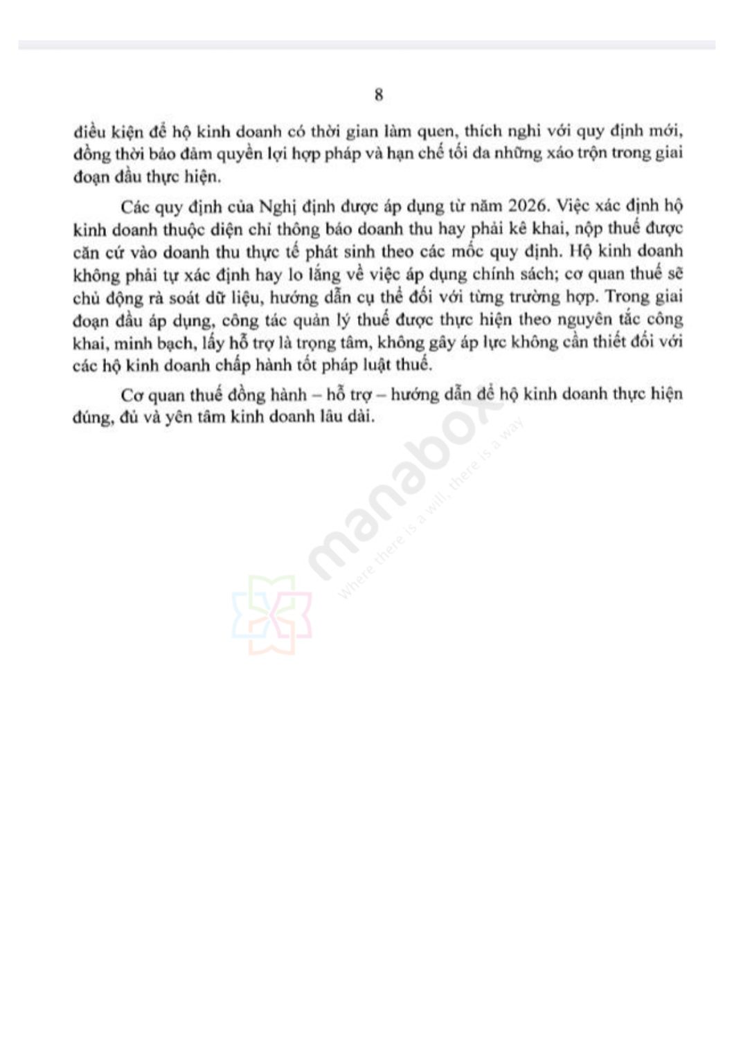 Trong giai đoạn đầu áp dụng, công tác quản lý thuế được thực hiện theo nguyên tắc công khai, minh bạch, lấy hỗ trợ là trọng tâm, không gây áp lực không cần thiết đối với các hộ kinh doanh chấp hành tốt pháp luật thuế