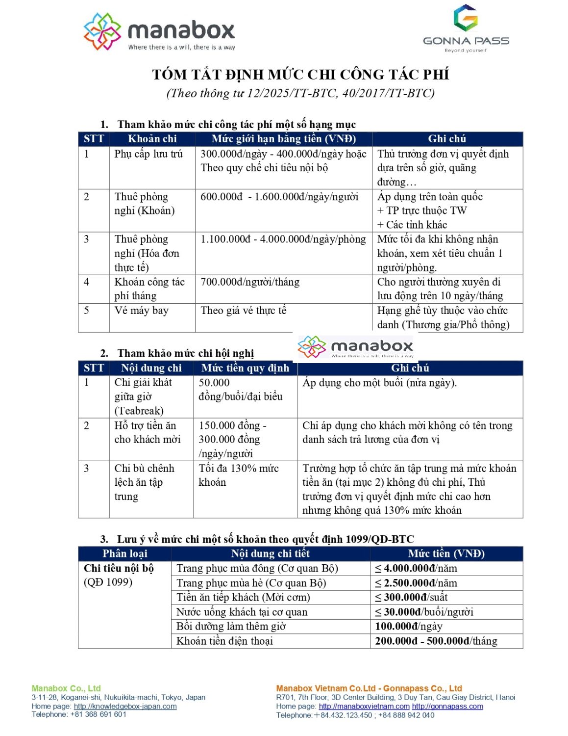 300.000đ/ngày – 400.000đ/ngày hoặc Theo quy chế chi tiêu nội bộ |