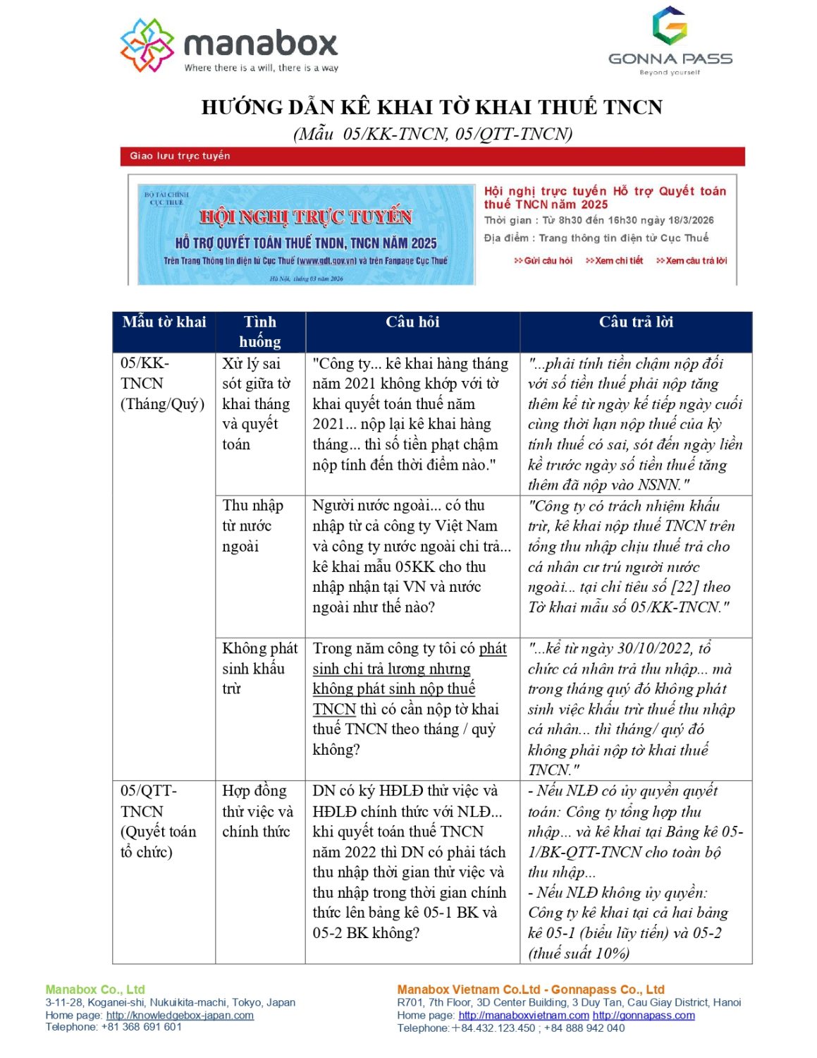 “Công ty có trách nhiệm khấu trừ, kê khai nộp thuế TNCN trên tổng thu nhập chịu thuế trả cho cá nhân cư trú người nước ngoài… tại chỉ tiêu số [22] theo Tờ khai mẫu số 05/KK-TNCN.” |
