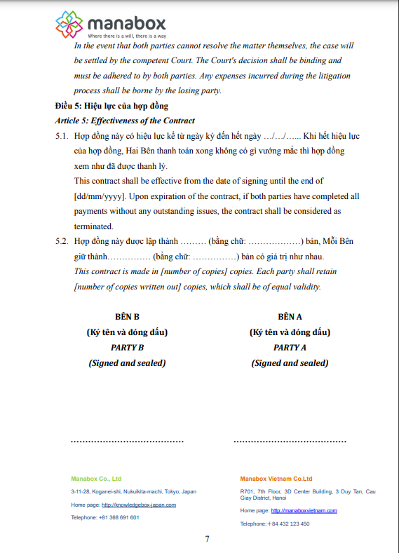 Bên cạnh đó mẫu hợp đồng được tích hợp hai ngôn ngữ Anh-Việt giúp doanh nghiệp nước ngoài dễ dàng tiếp cận với các dịch vụ trong nước. Đồng thời giảm thiểu rào cản ngôn ngữ giữa hai bên và tránh được rủi ro pháp lí.