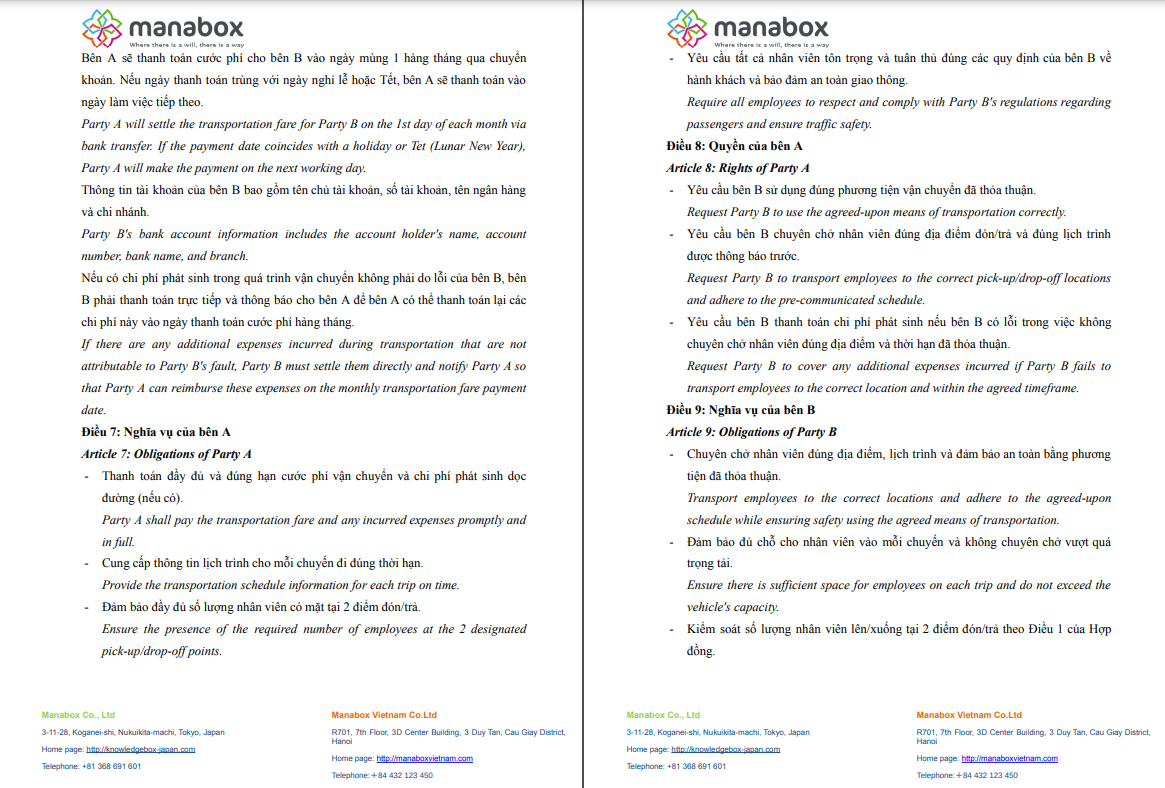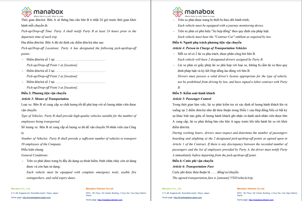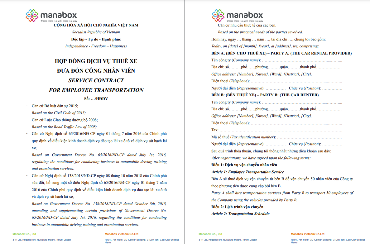 MẪU HỢP ĐỒNG DỊCH VỤ THUÊ XE ĐƯA ĐÓN CÔNG NHÂN VIÊN