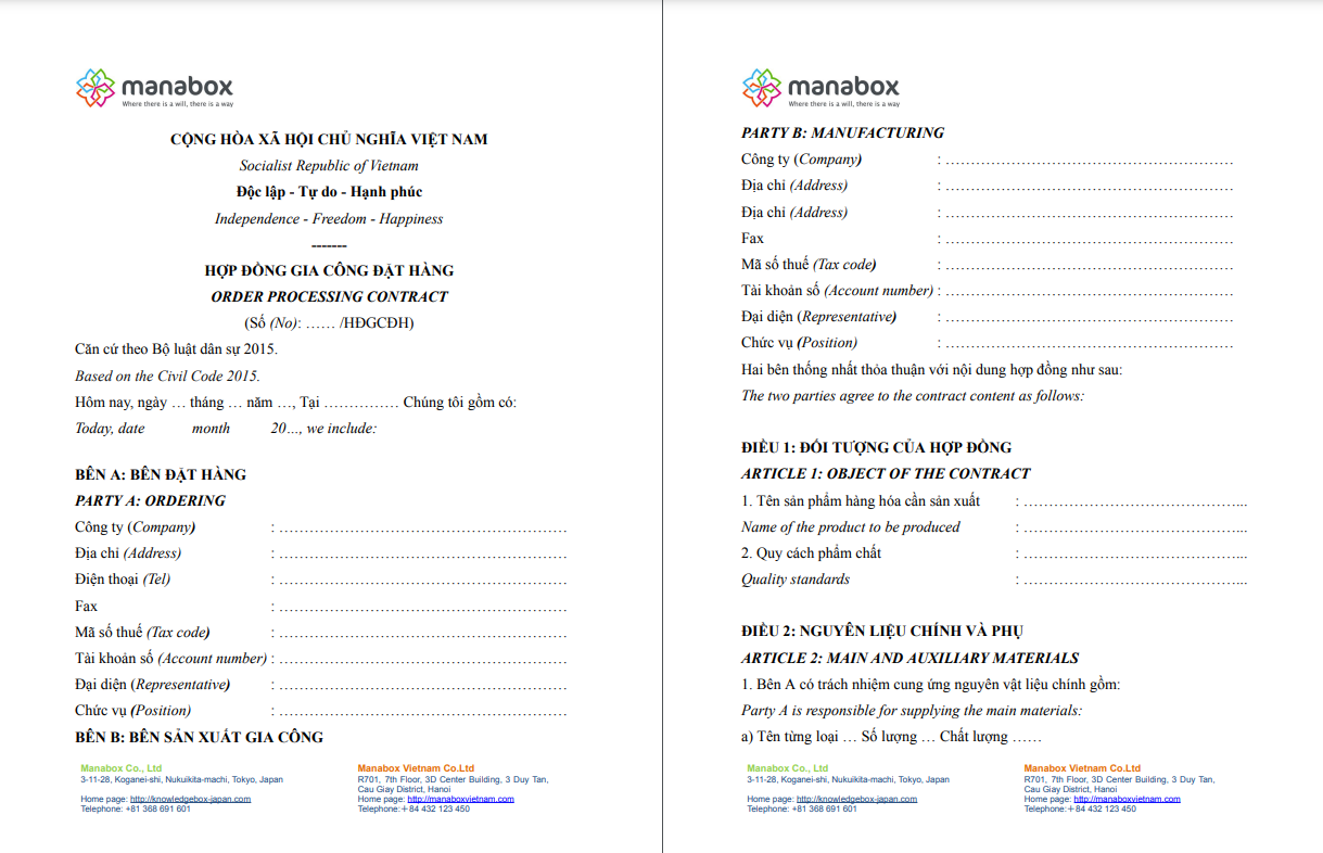HỢP ĐỒNG GIA CÔNG ĐẶT HÀNG
