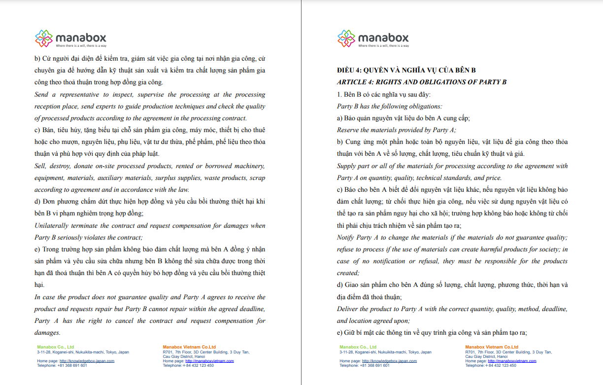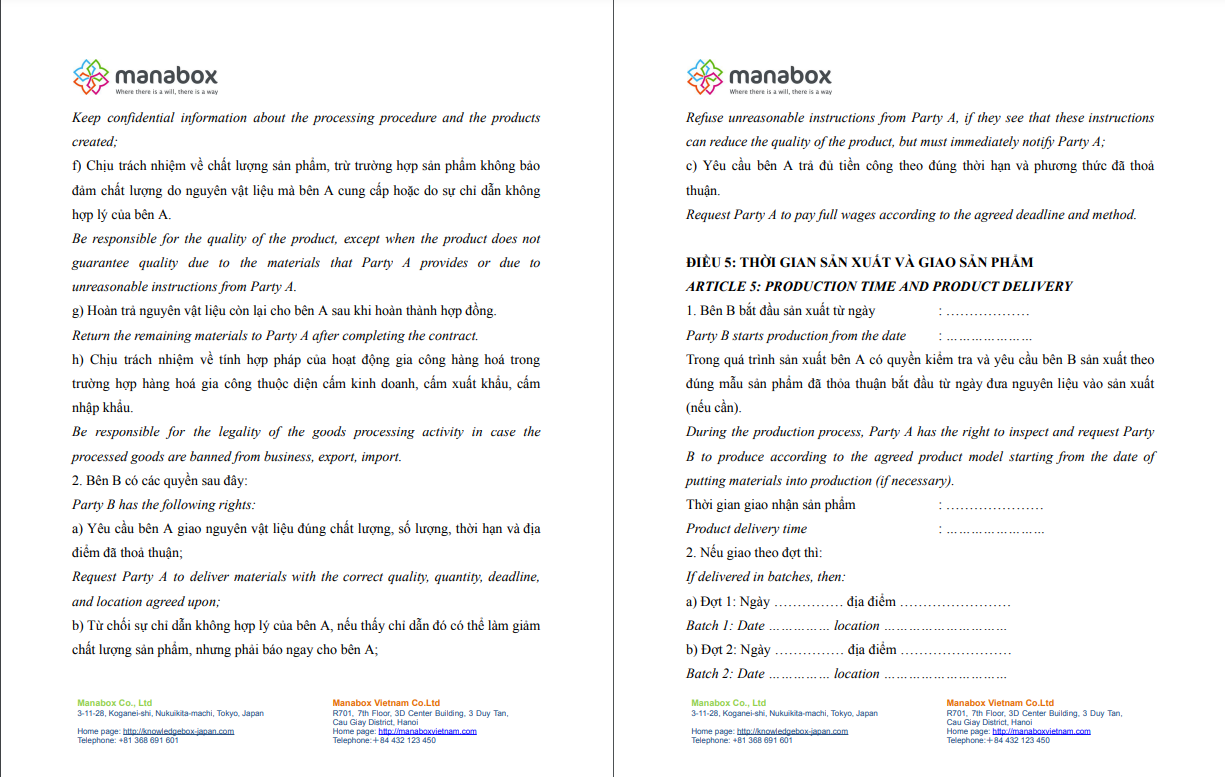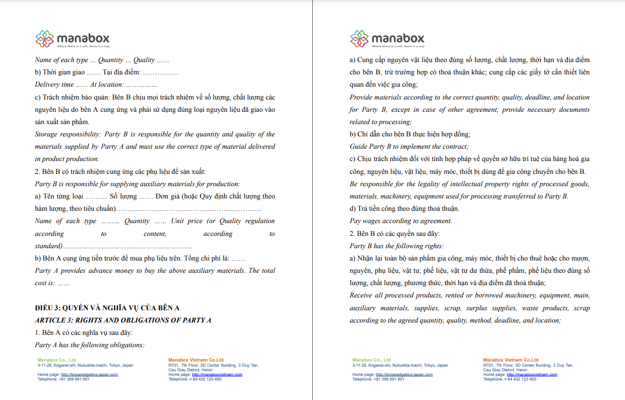 Bên cạnh đó mẫu hợp đồng được tích hợp hai ngôn ngữ Anh-Việt giúp doanh nghiệp nước ngoài dễ dàng tiếp cận với các dịch vụ trong nước đồng thời giảm thiểu rào cản ngôn ngữ giữa hai bên và tránh được rủi ro pháp lí.