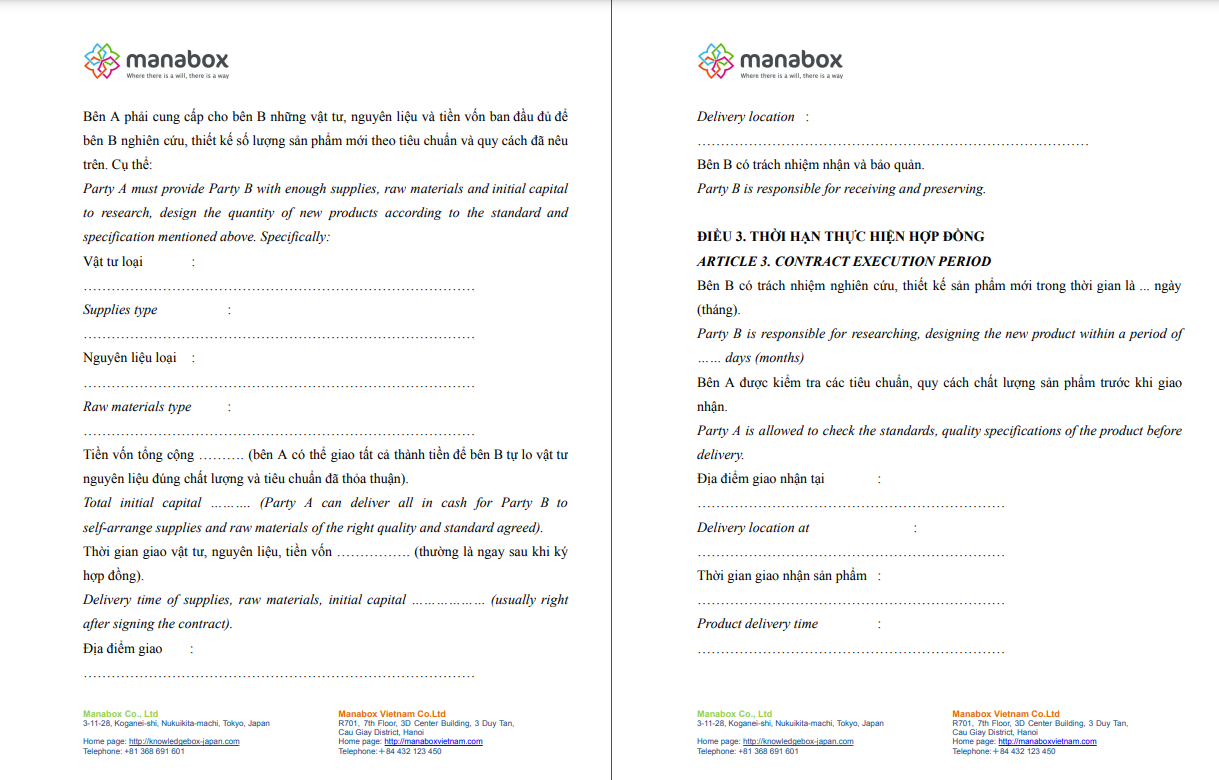 Hợp đồng Nghiên cứu Thiết kế Sản phẩm Mới là một yếu tố then chốt trong quá trình phát triển và đưa sản phẩm mới ra thị trường. Trong bối cảnh cạnh tranh gay gắt và nhu cầu người tiêu dùng ngày càng đa dạng, việc đầu tư vào nghiên cứu và thiết kế sản phẩm mới không chỉ là một chiến lược kinh doanh thông minh mà còn là bước đi không thể thiếu để duy trì và mở rộng thị trường. Sau đây Manabox xin cung cấp cho quý độc giả những thông tin cần thiết về bản hợp đồng này.