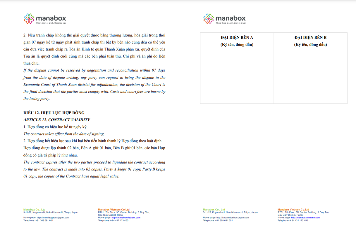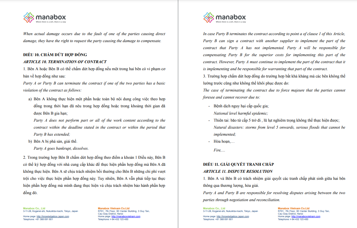 Bên cạnh đó mẫu hợp đồng được tích hợp hai ngôn ngữ Anh-Việt giúp doanh nghiệp nước ngoài dễ dàng tiếp cận với các dịch vụ trong nước đồng thời giảm thiểu rào cản ngôn ngữ giữa hai bên và tránh được rủi ro pháp lí.
