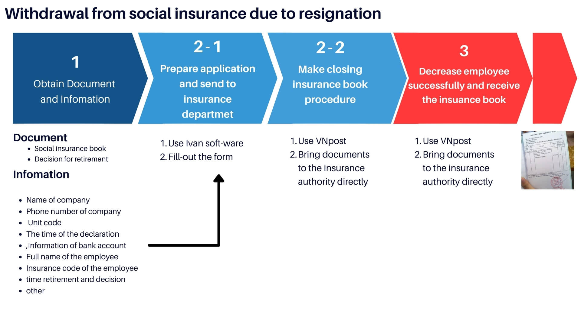 After receive the result of decree the employee, you need to close the insurance book for employee.You need to collect the insurance book and send it to the insurance department.