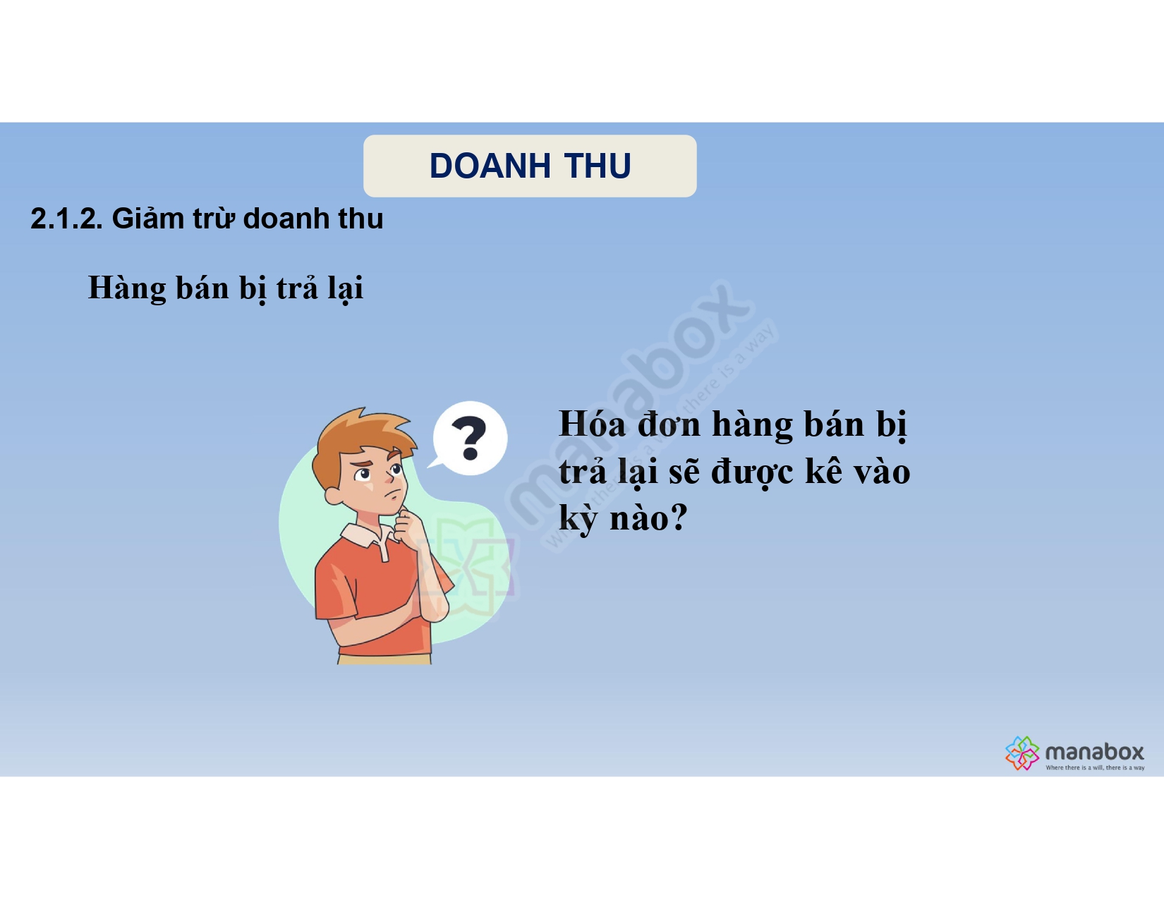 - Tại công ty TNHH Manabox Việt Nam: Hạch toán Hàng bán bị trả lại