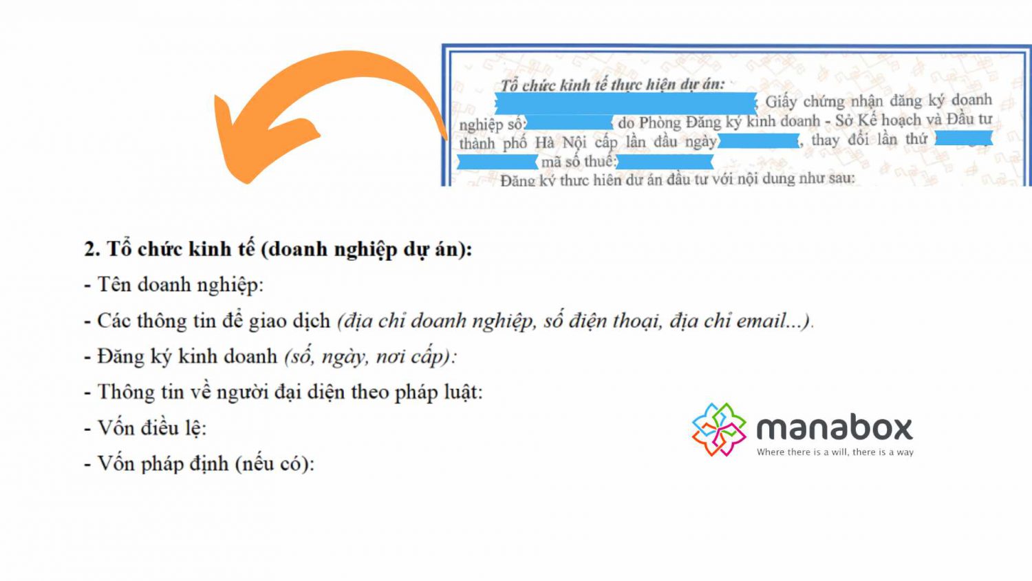 Phần I.2. Tổ chức kinh tế (doanh nghiệp dự án)