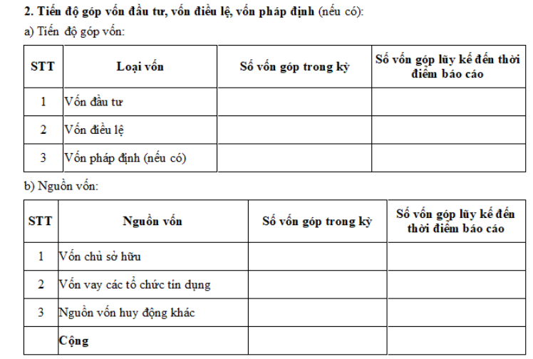 Phần II.2 Tiến độ góp vốn đầu tư, vốn điều lệ, vốn pháp định (nếu có)