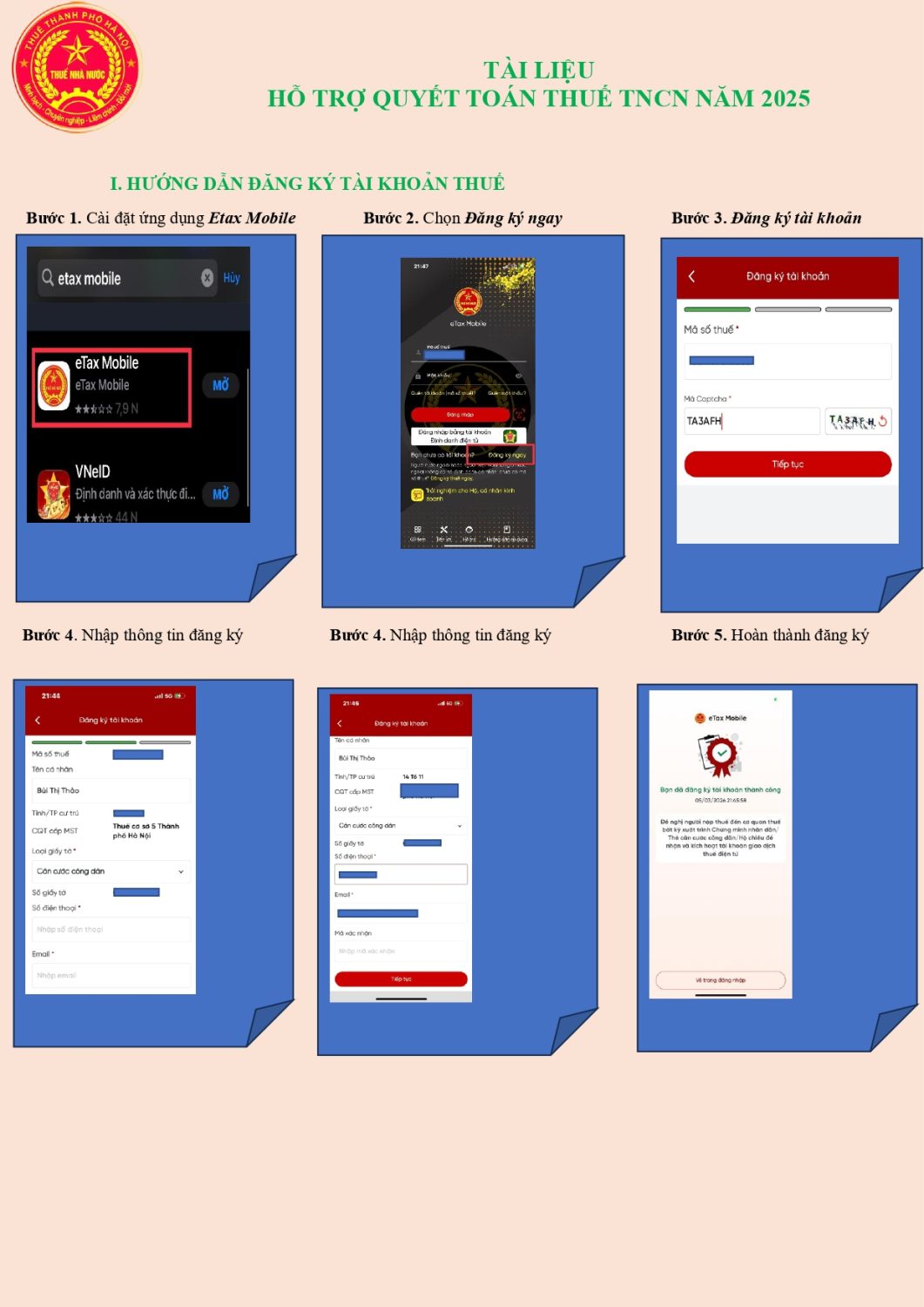 HƯỚNG DẪN ĐĂNG KÝ TÀI KHOẢN THUẾ
