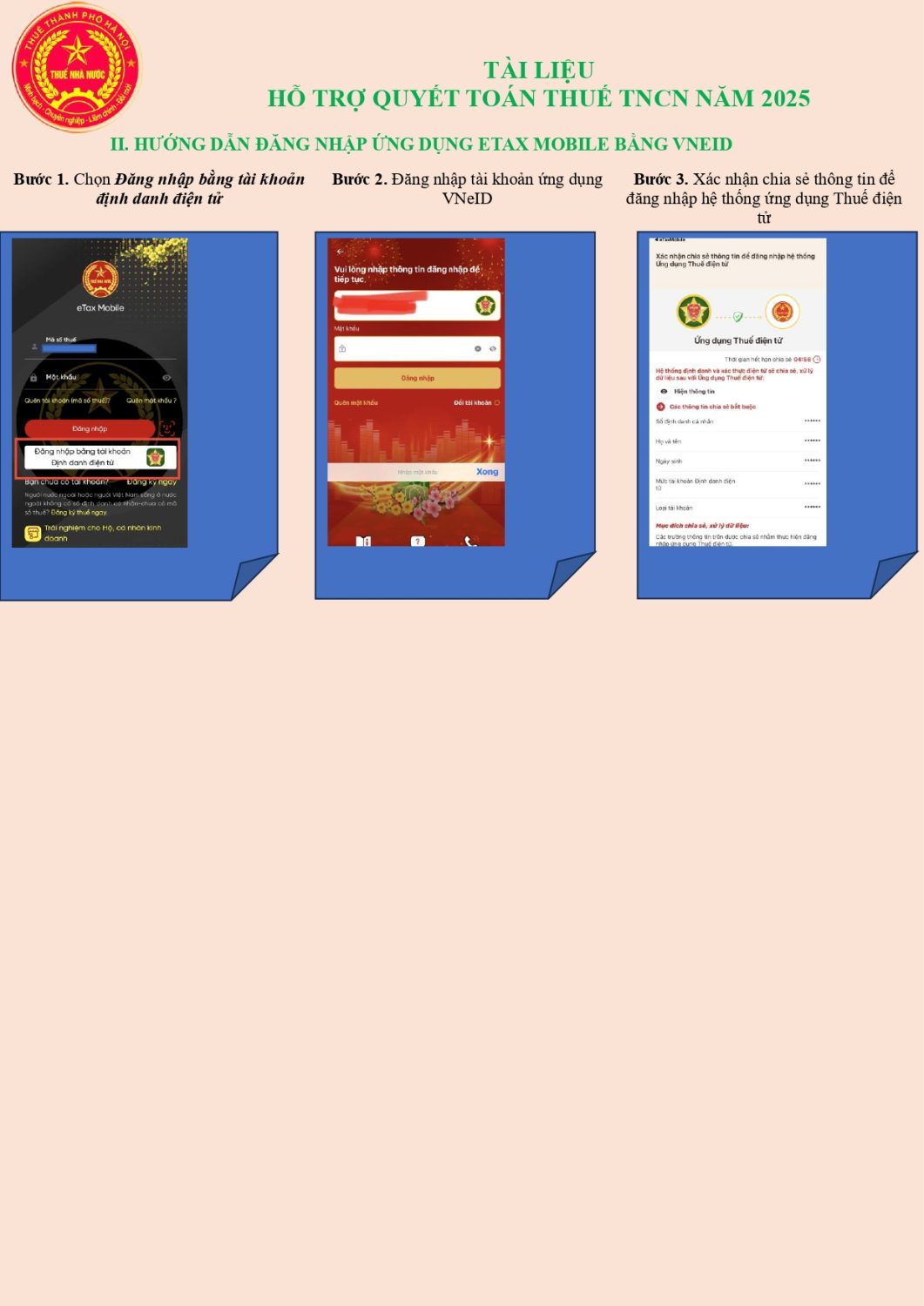 HƯỚNG DẪN ĐĂNG NHẬP ỨNG DỤNG ETAX MOBILE BẰNG VNEID